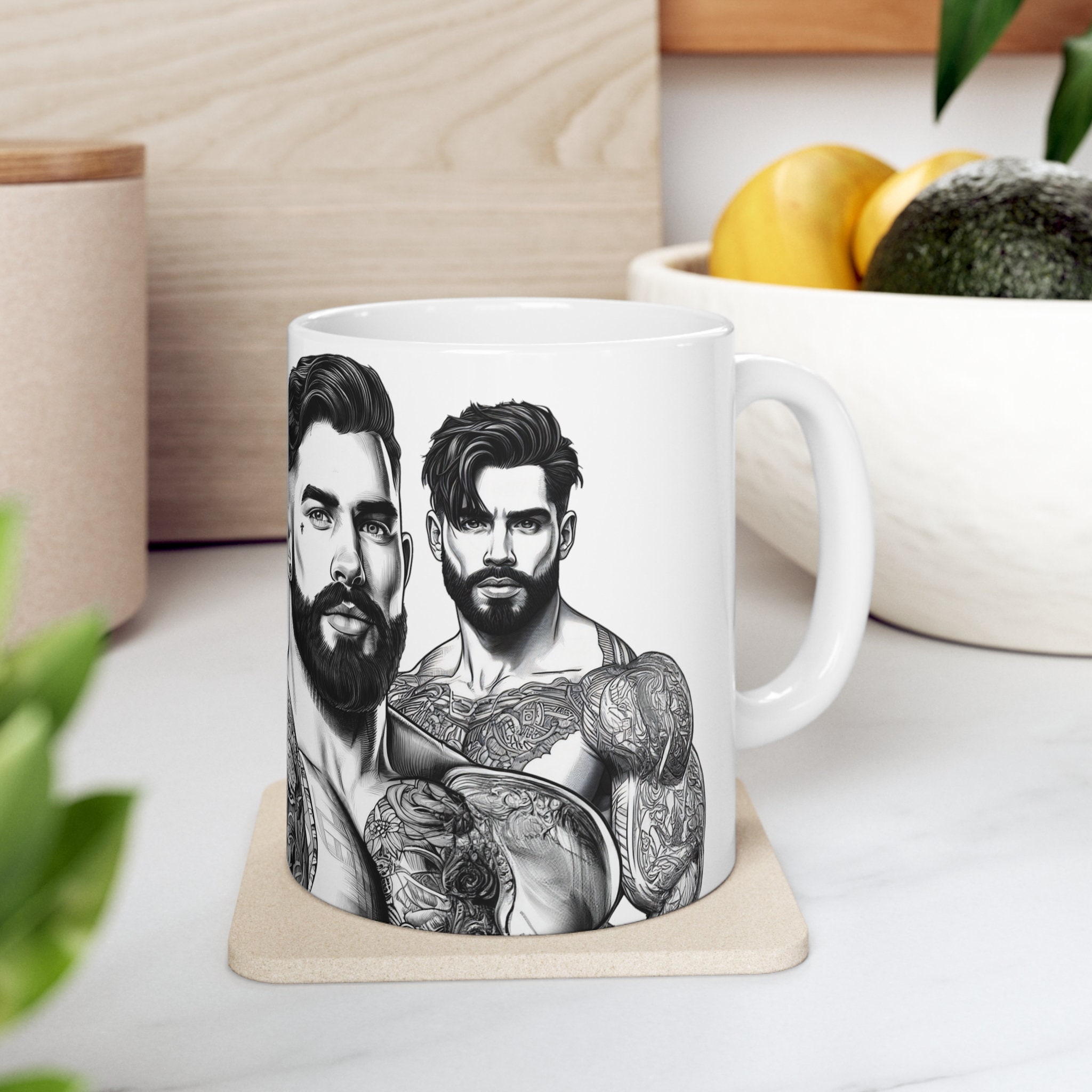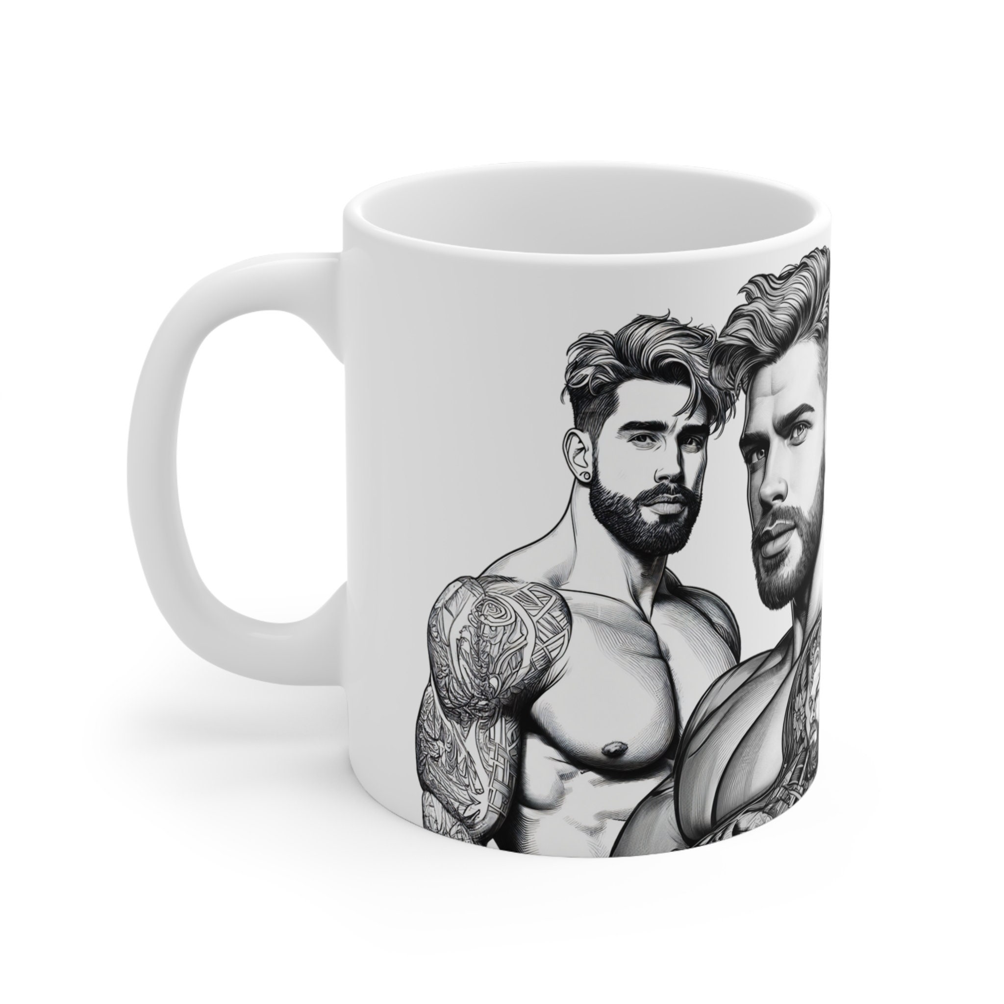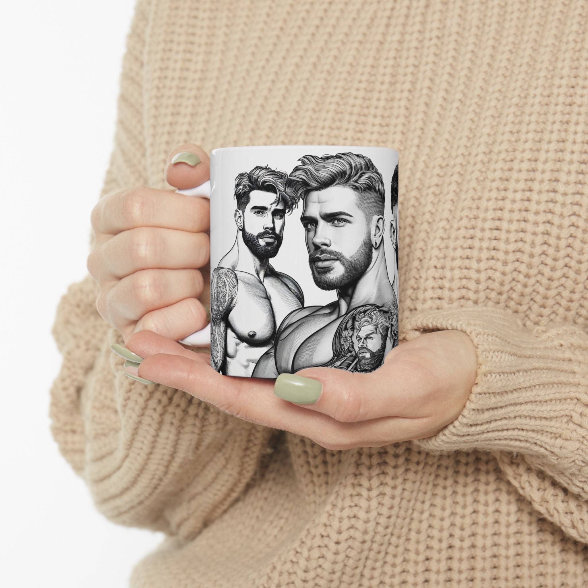 Unleash the power of your morning brew with our 11-ounce mug showcasing stunning illustrations of ripped, handsome men. Whether it's coffee, tea, or hot chocolate, this mug will add a touch of brawn and charm to your daily routine.