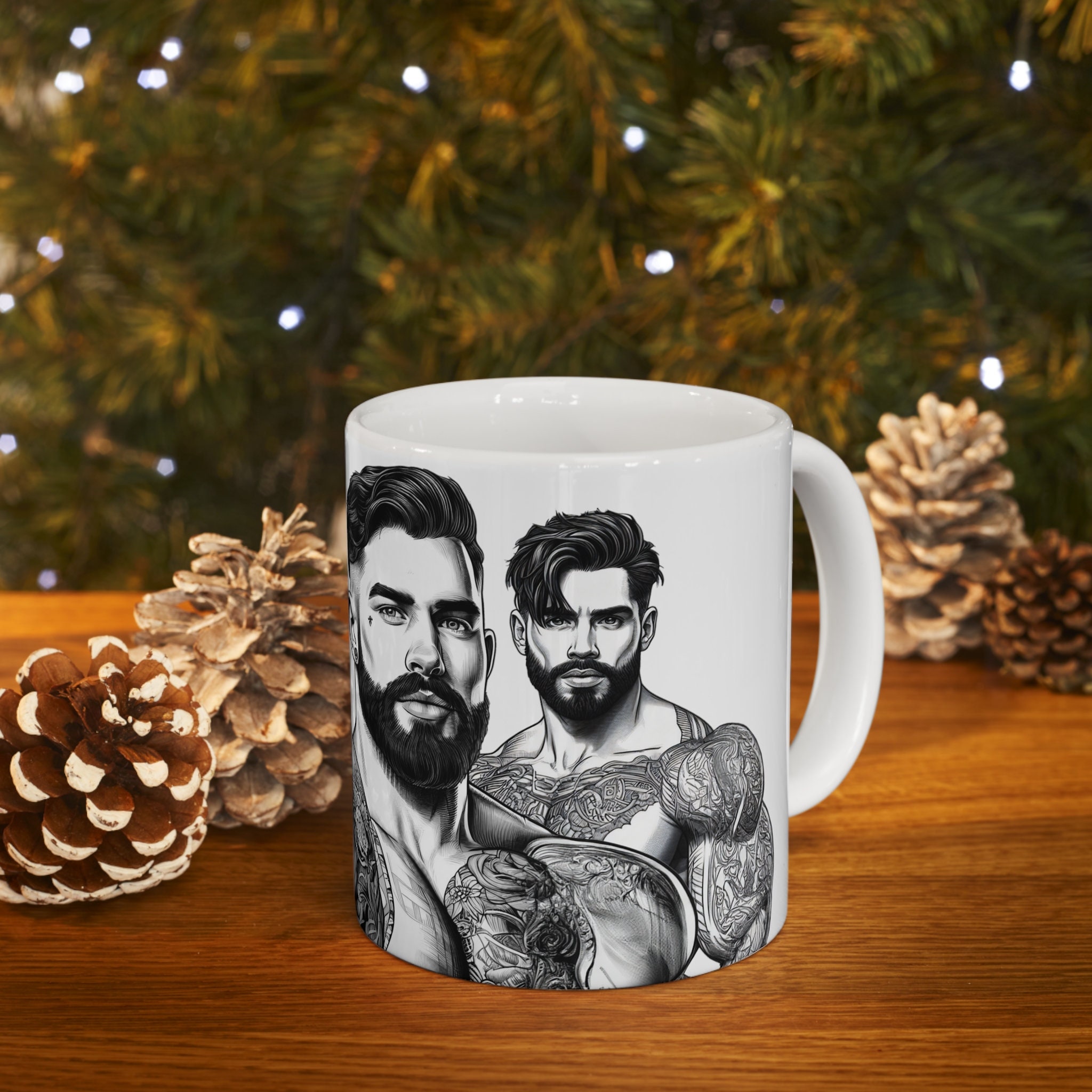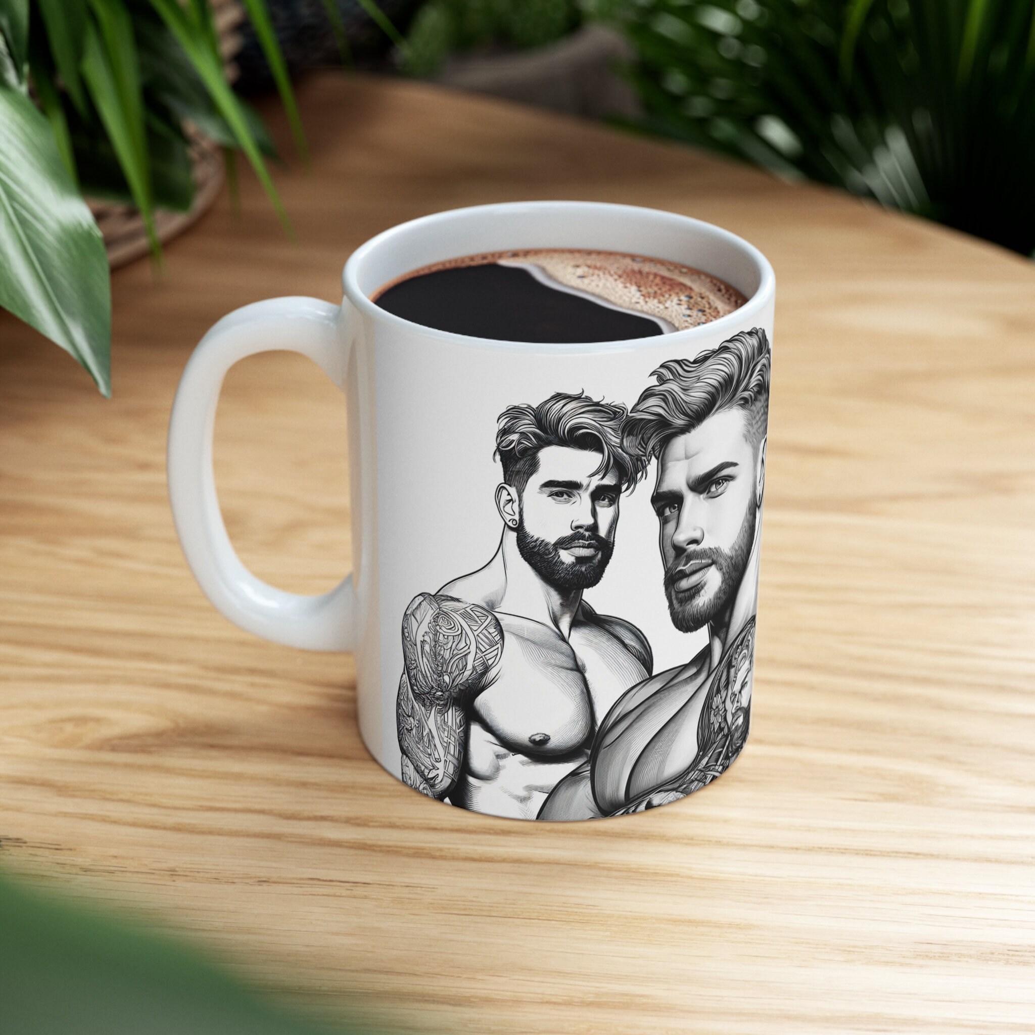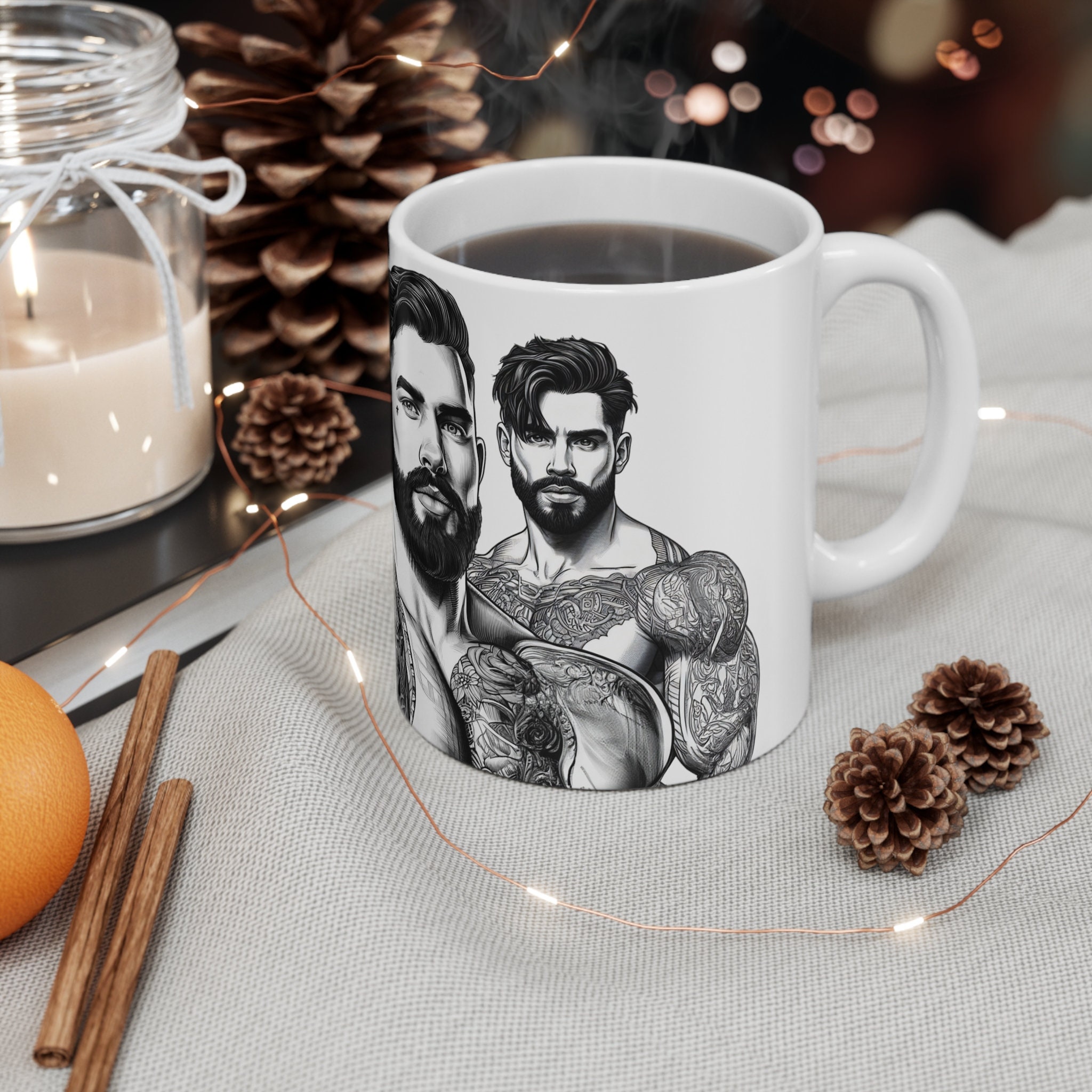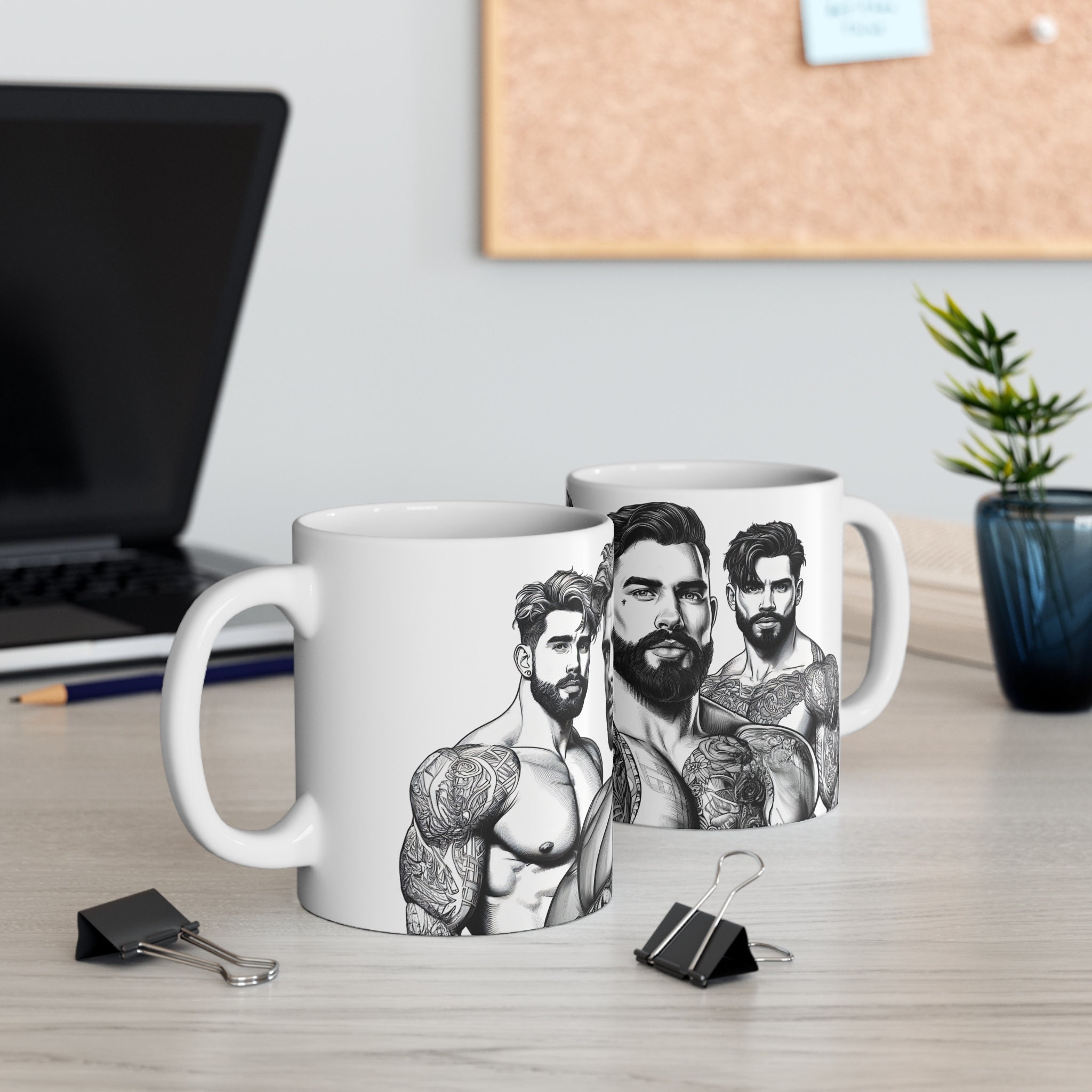 Unleash the power of your morning brew with our 11-ounce mug showcasing stunning illustrations of ripped, handsome men. Whether it's coffee, tea, or hot chocolate, this mug will add a touch of brawn and charm to your daily routine.