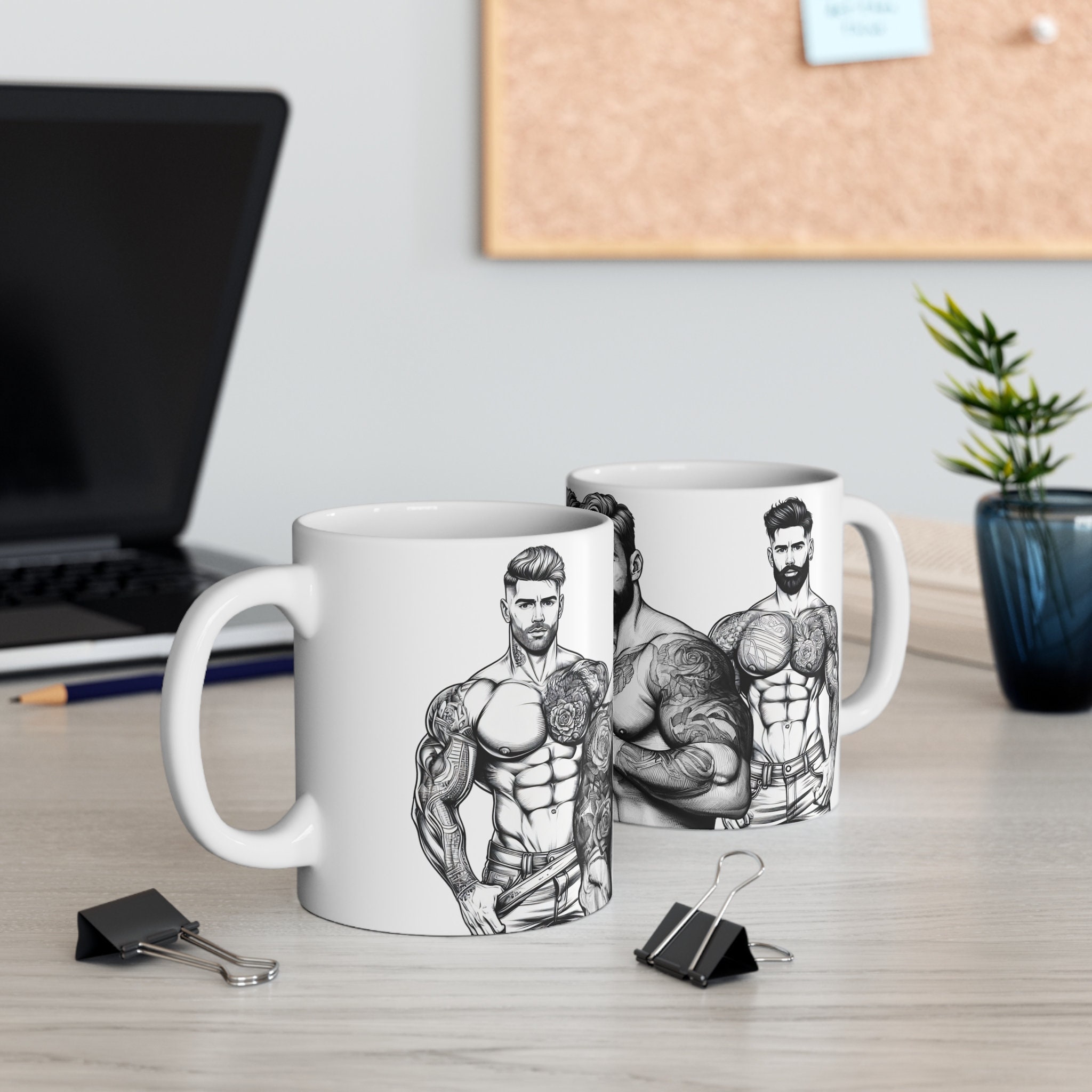 Start your day with a jolt of muscle daddies energy! Our 11-ounce mug boasts impeccably drawn, muscle-bound hunks that'll make your morning routine a whole lot steamier. Elevate your coffee game and show off your bold style!
