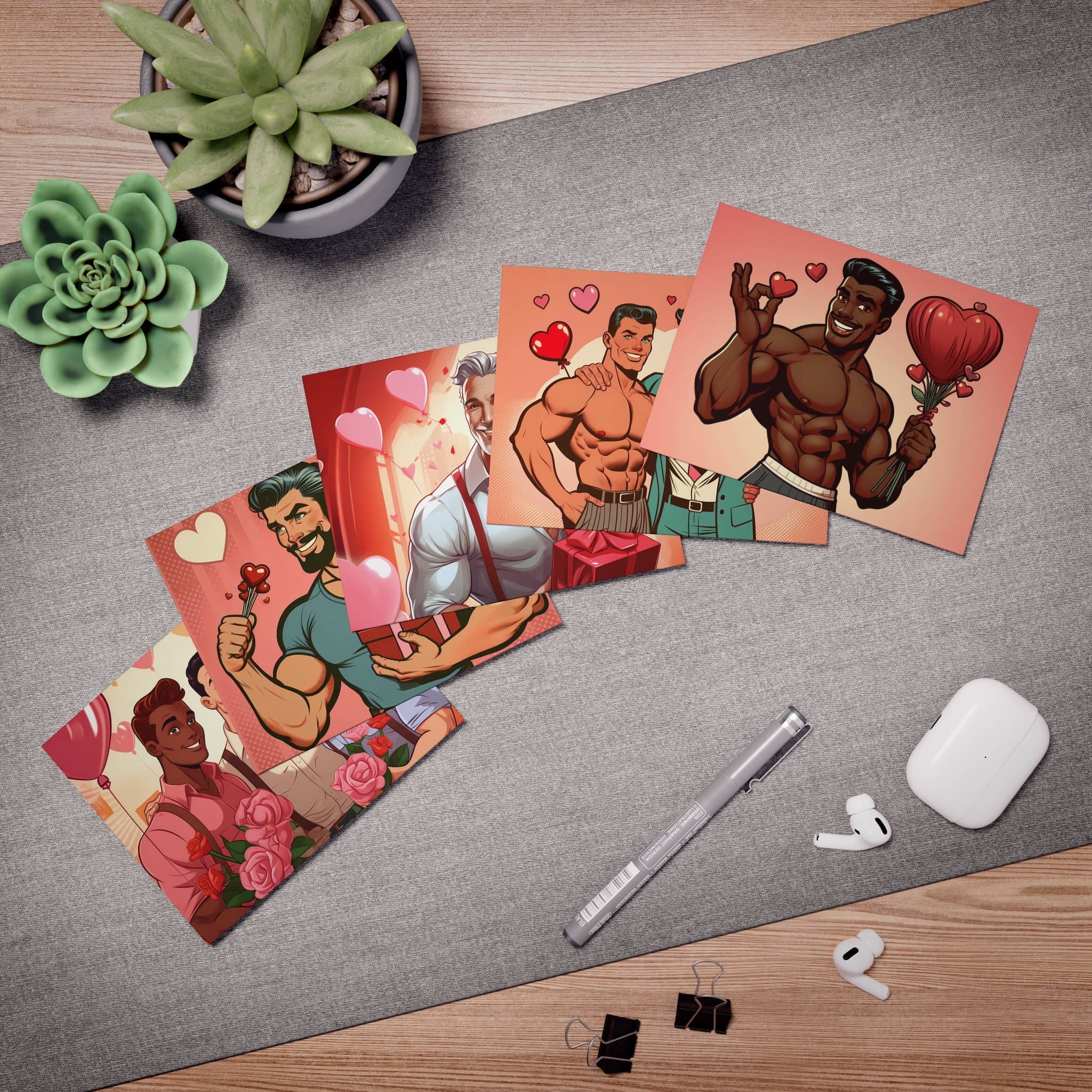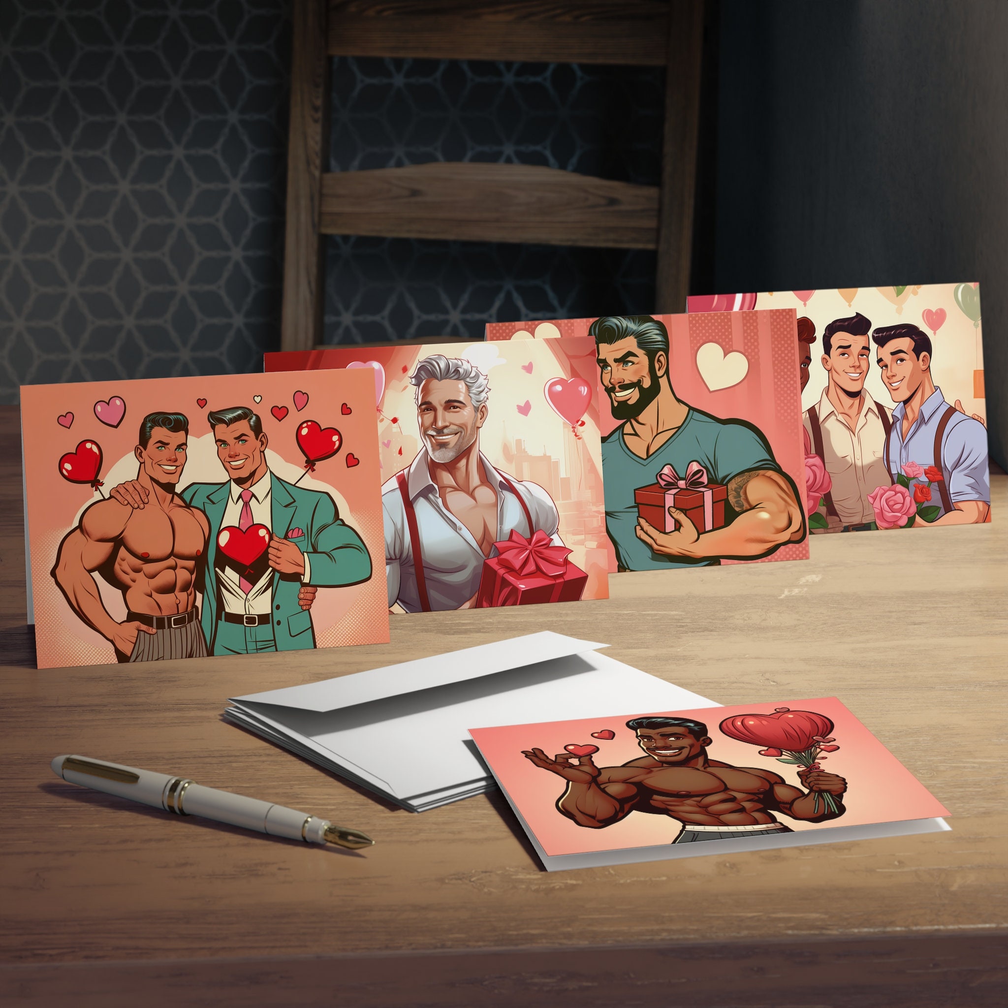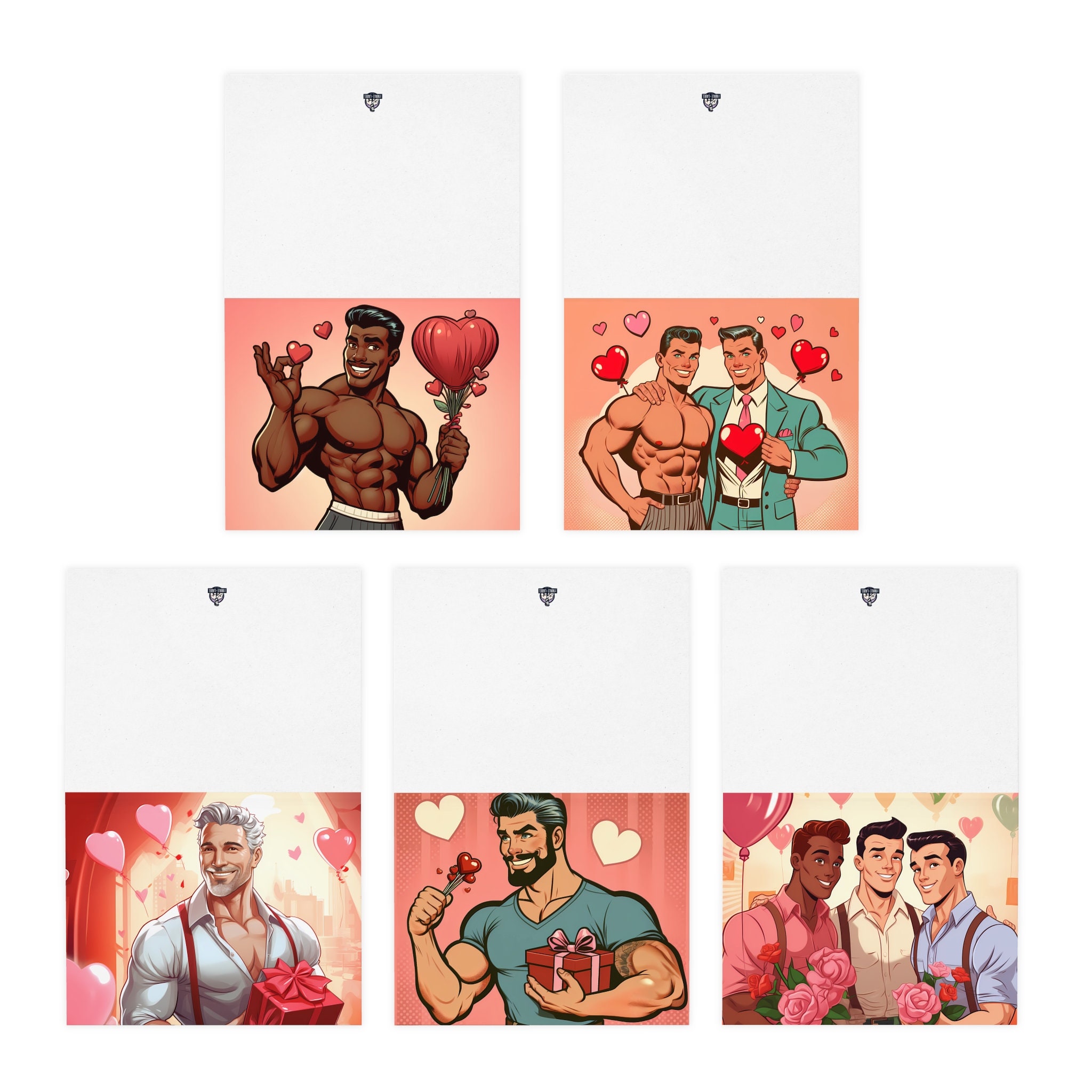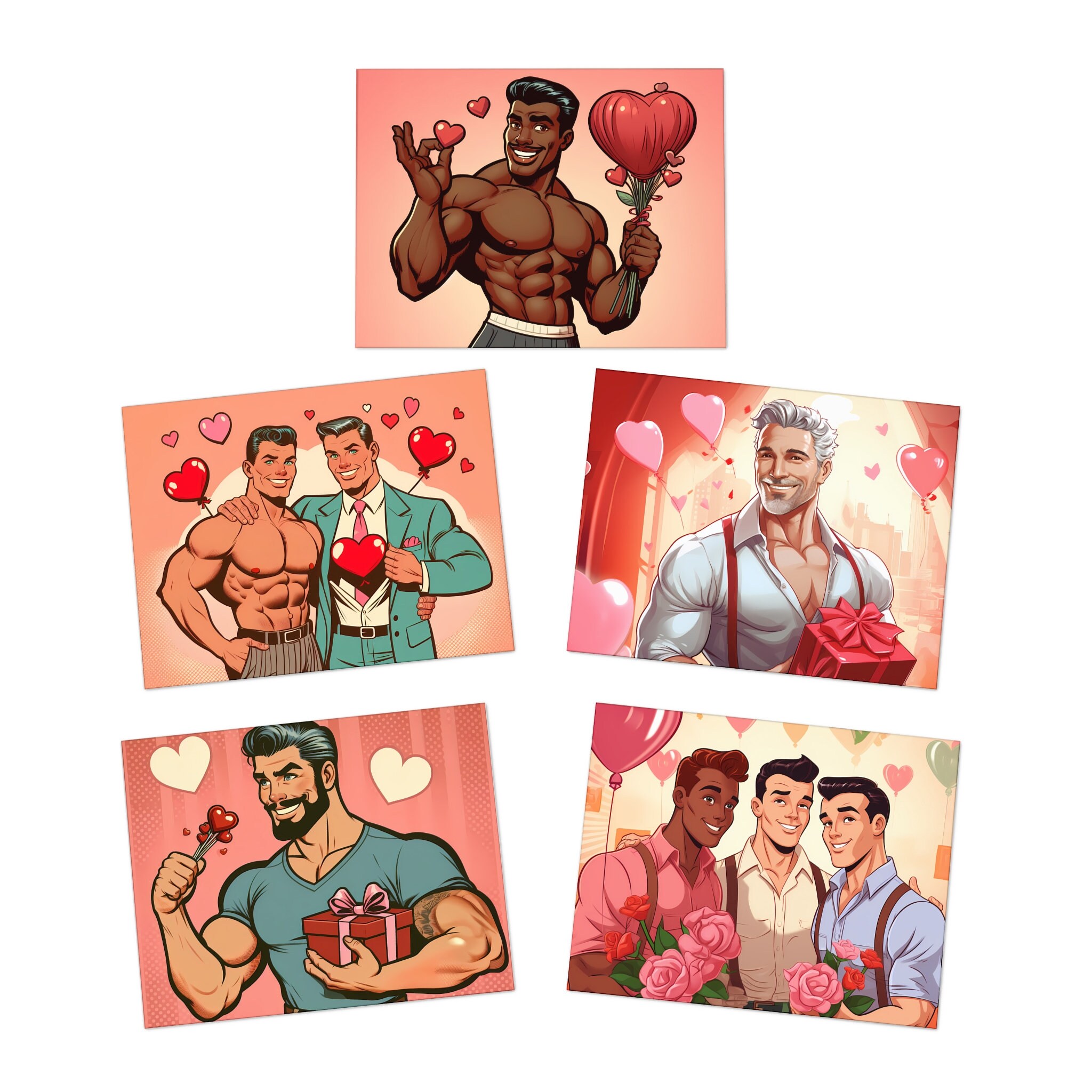 Retro 50s Style Gay Valentine's Day Cards: Handsome Men (5-Pack)
