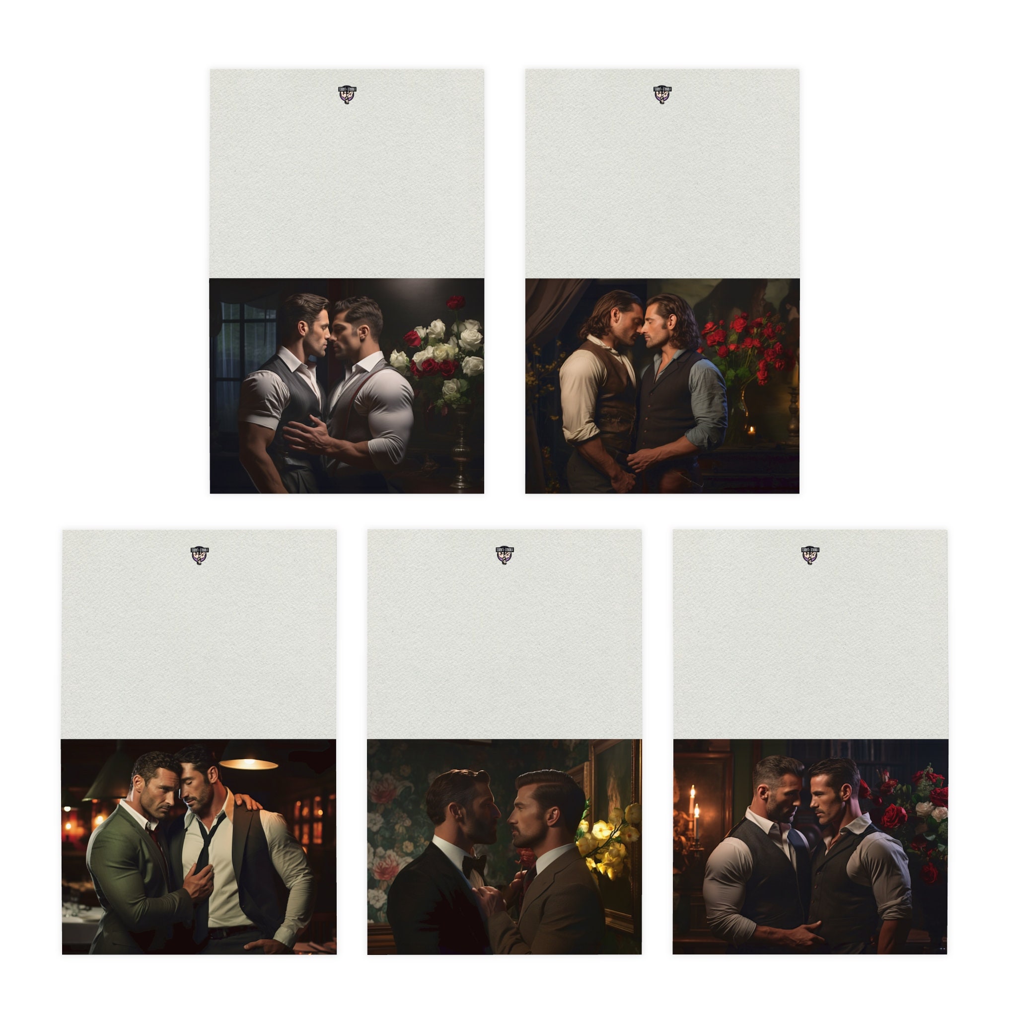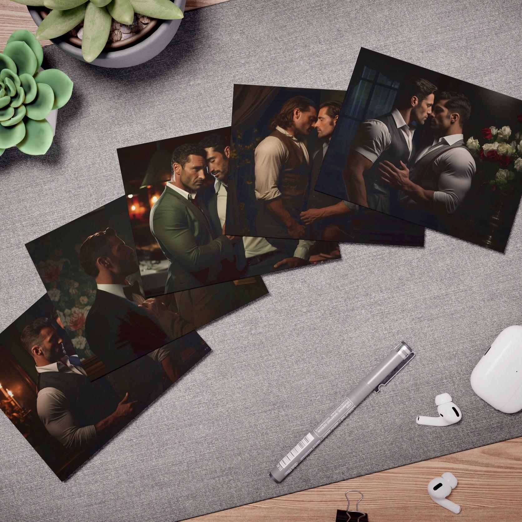 Surprise your special someone with our Cinematic Romance Classic Scenes Greeting Cards, crafted for unforgettable moments. Featuring timeless images of gay romance in a bygone era, these cards, available in classic horizontal format, offer a unique twist on traditional sentiments. Express love and create cherished memories for special occasions like anniversaries and engagements. Celebrate the enduring beauty of the past with our inclusive and thoughtfully curated designs, where love knows no bounds. Make every moment special with our Greeting Cards for Special Occasions – a meaningful way to share affection and create lasting memories.