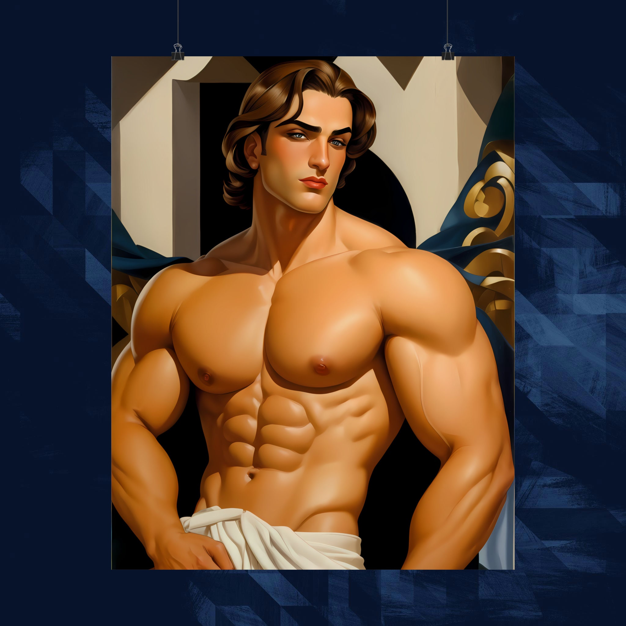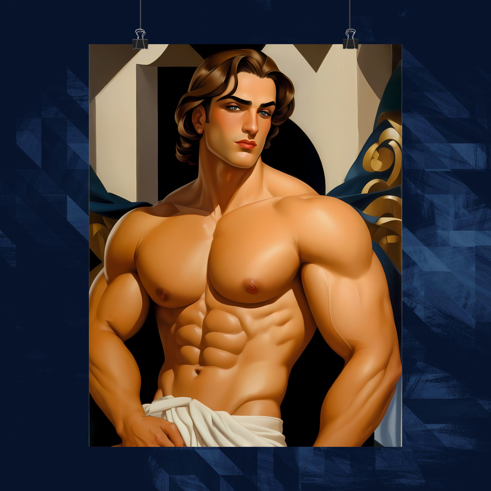 Elevate your space with our premium matte vertical posters showcasing a captivating Art Deco-style portrayal of a muscular and radiant gay couple. Crafted on museum-grade paper (175gsm fine art paper), these posters transform digital artwork into a masterpiece of real-life décor. The choice of top-tier pigmented archival inks ensures a stunning and enduring representation of this vibrant piece. Choose from multiple sizes to suit your space and indulge in the perfect fusion of artistic expression and premium quality.