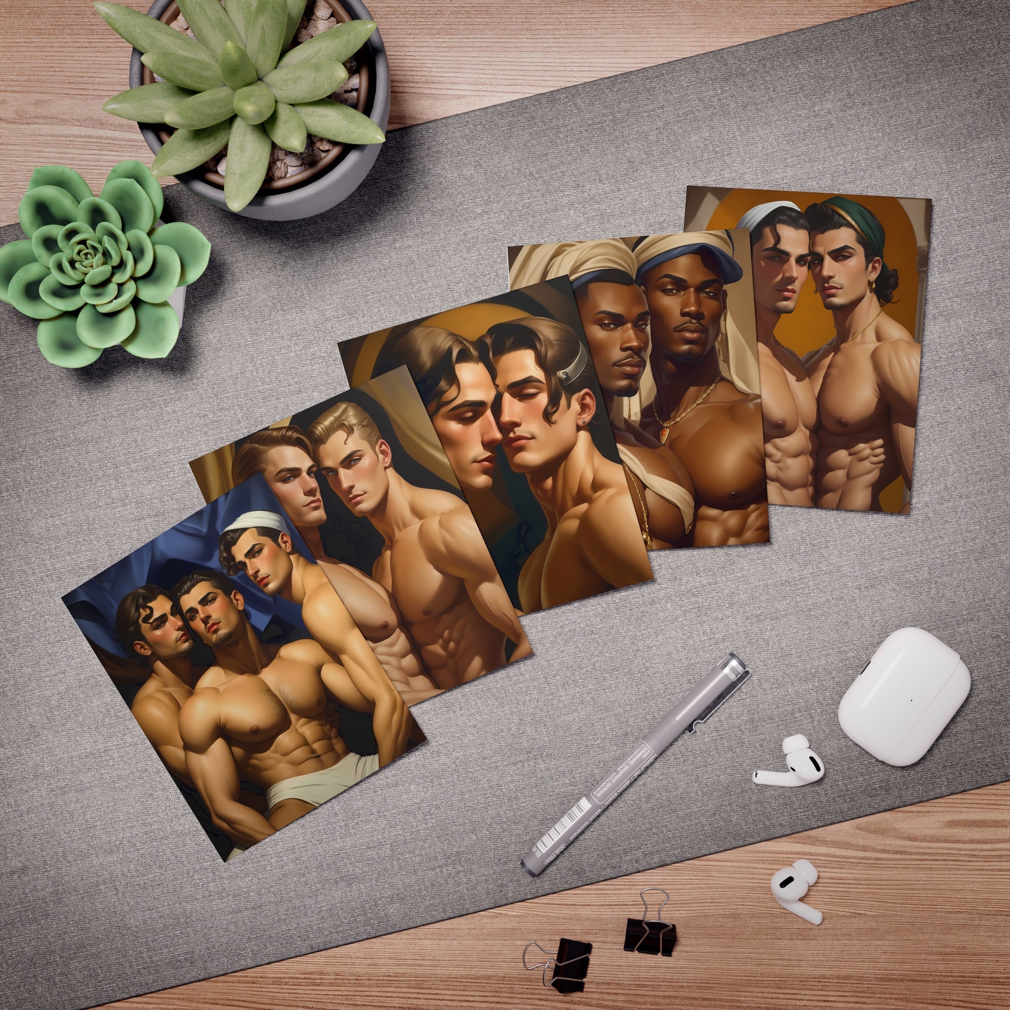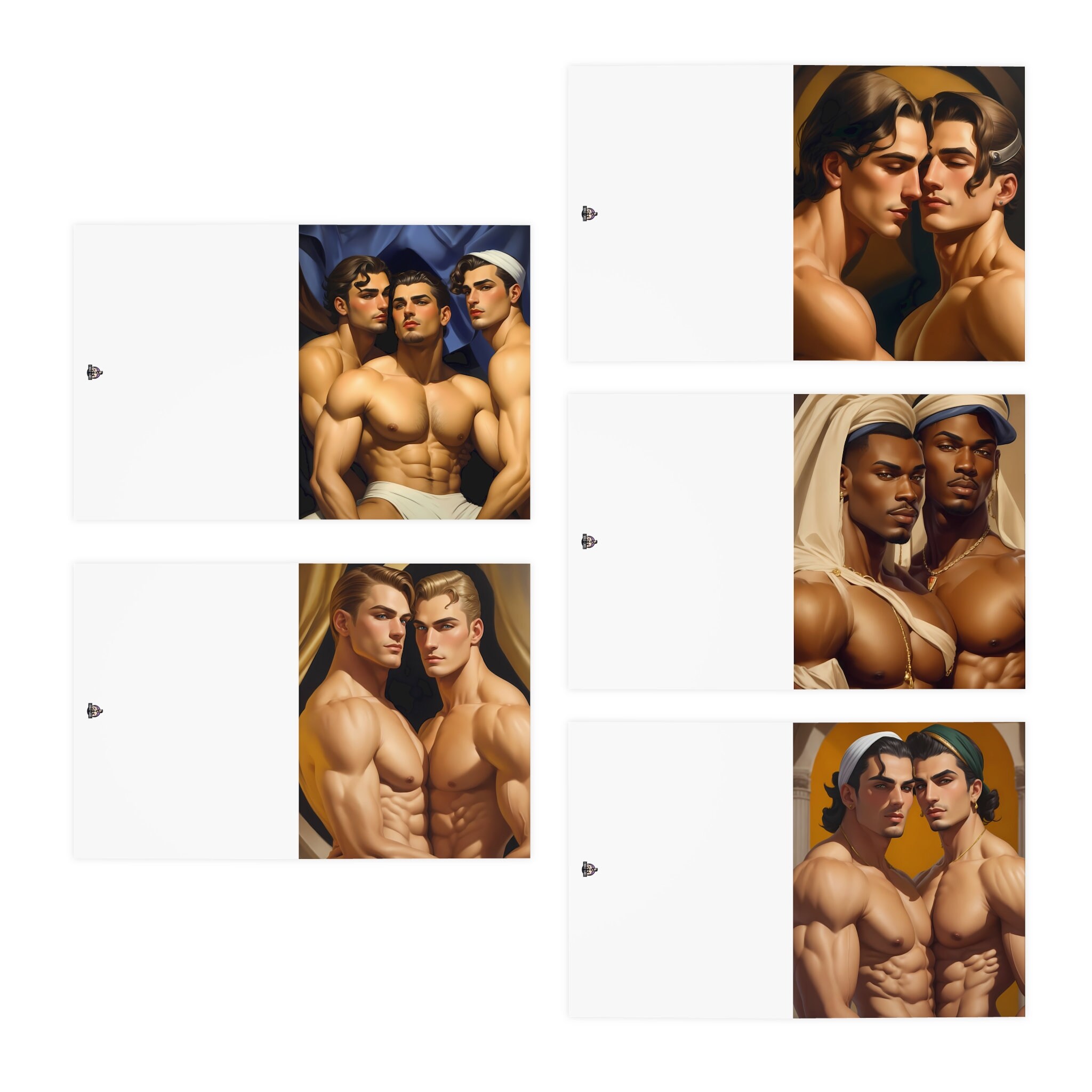 Art Deco Greeting Cards: Gay Muscular Men, Lempicka Style (5-Pack)