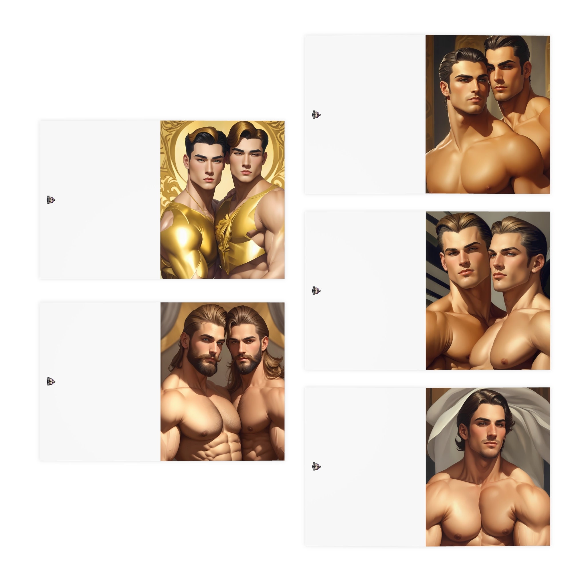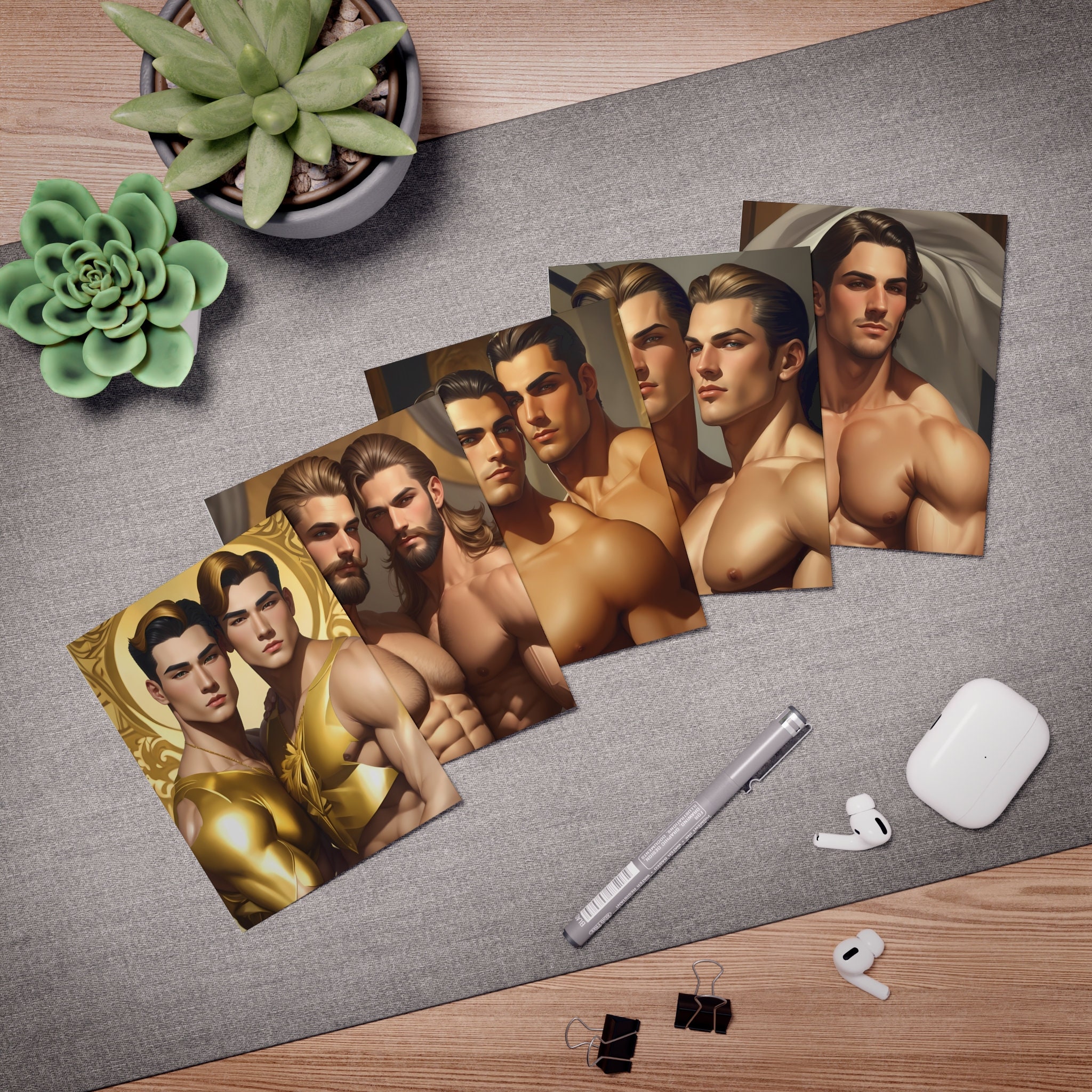Art Deco Handsome Men Greeting Cards: Gay Erotic Thank You Notes (5-Pack)