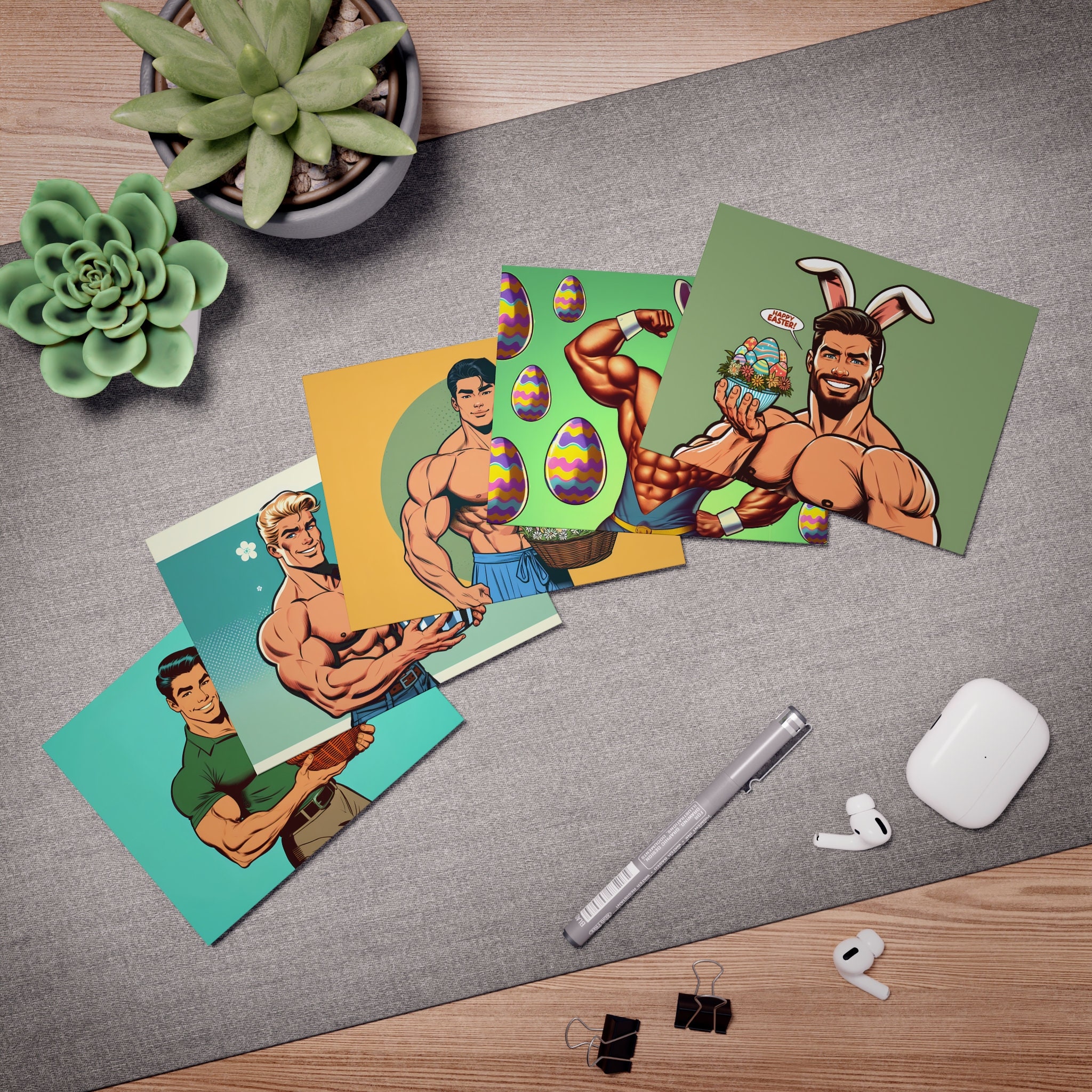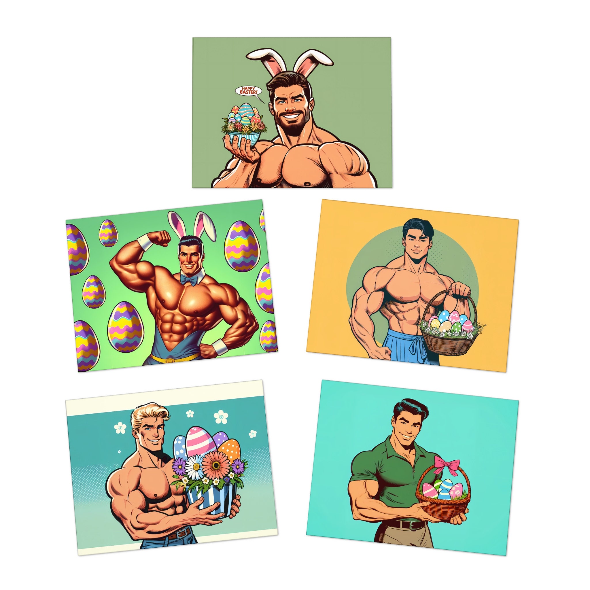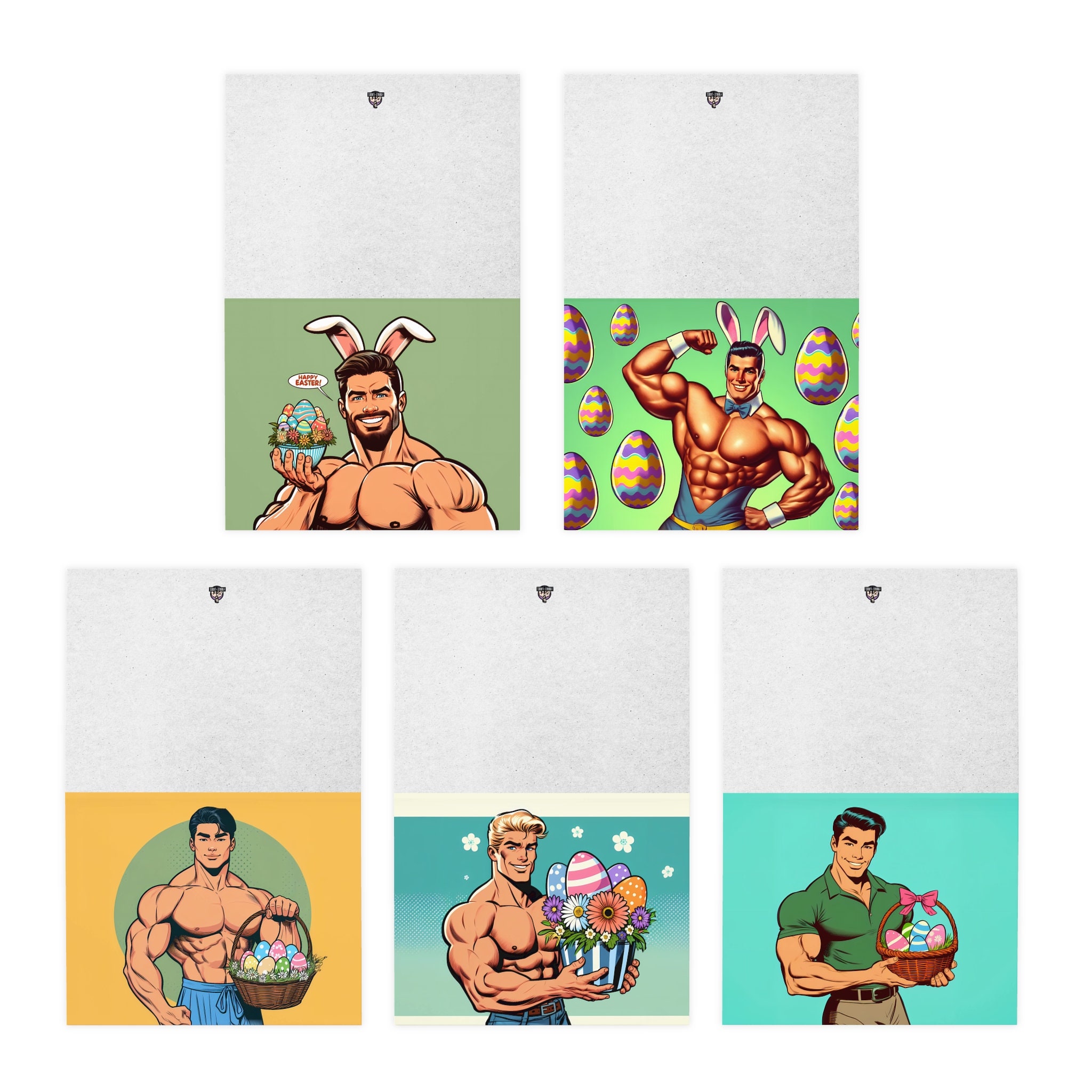 Easter Retro Vintage 50s Style Multi-Design Greeting Cards (5-Pack) Happy Easter Postcards Gay Muscular Handsome Men Hunks Greetings Cards