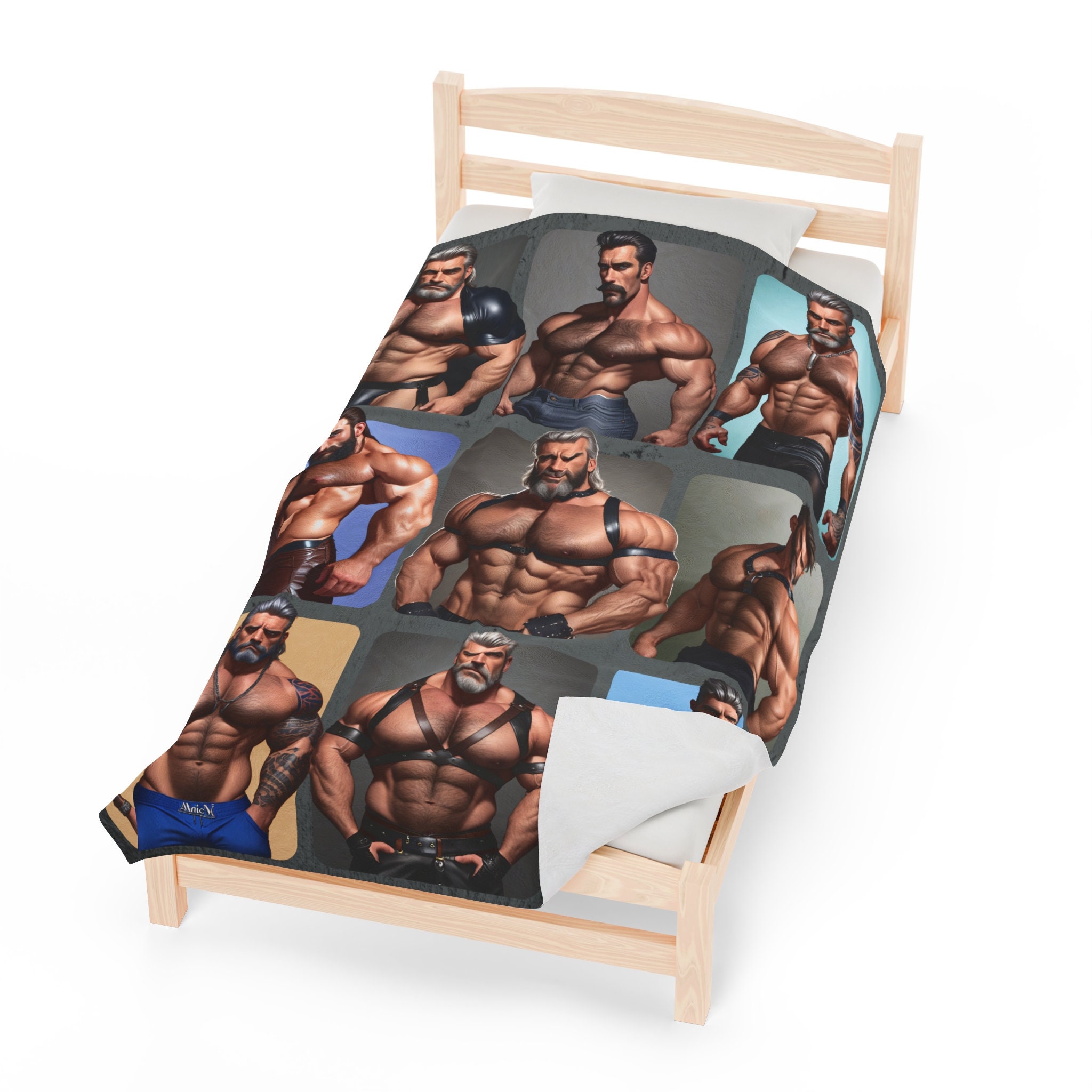 Do you also love muscular hairy silver hair daddies? Well we got you covered, literally! Get ready to turn up the heat and cozy up in style with our velveteen plush blanket! This isn't just any ordinary blanket—it's a must-have for every guy who loves a touch of luxury and a whole lot of fun.