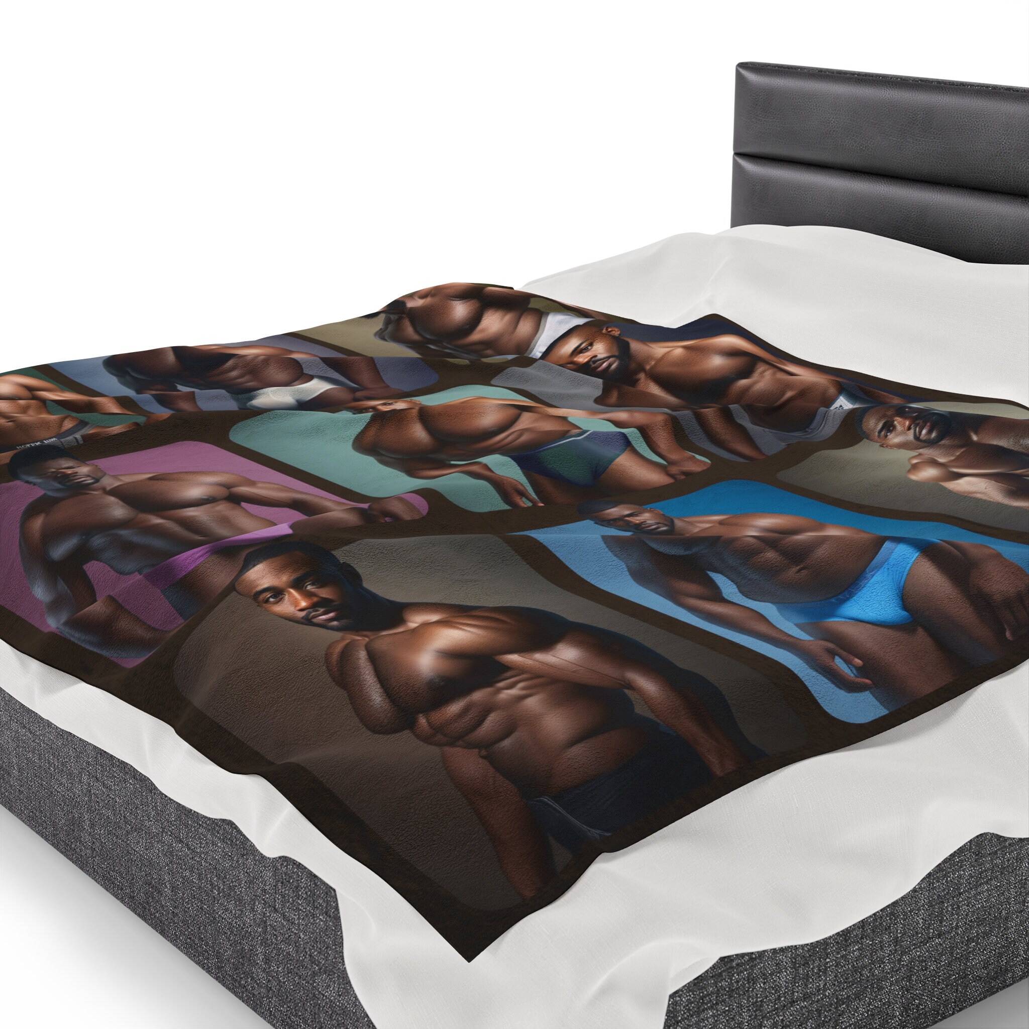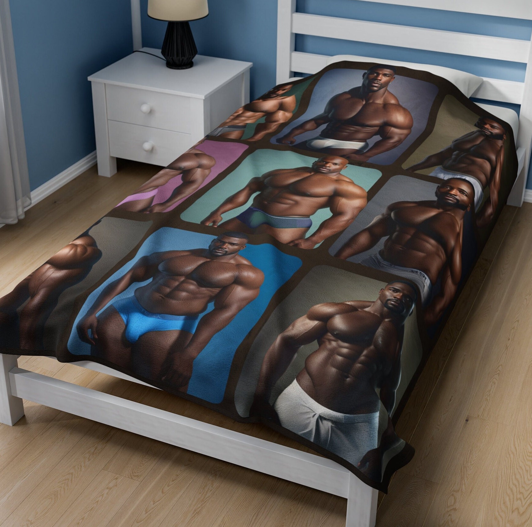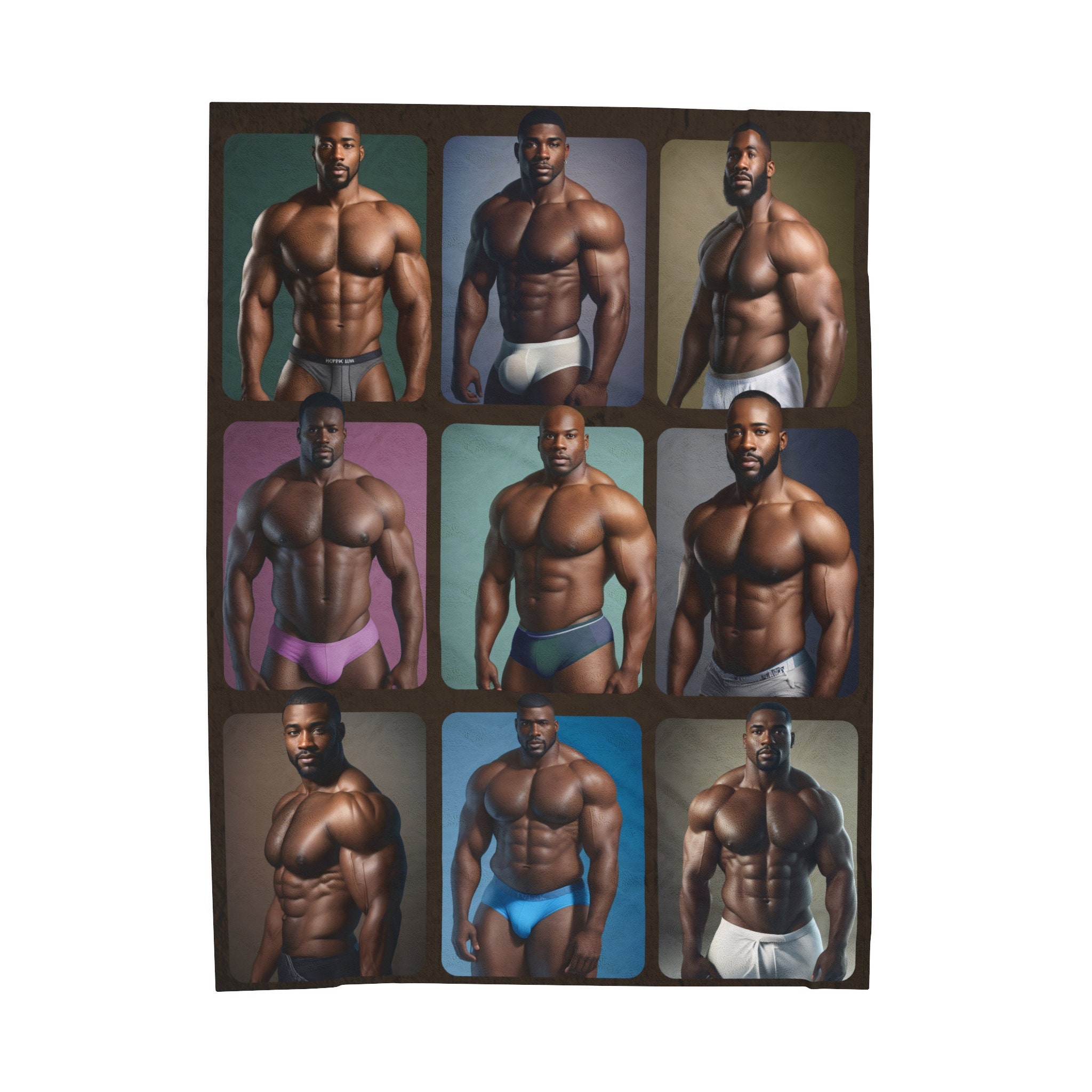 Velveteen Plush Blanket Black Men in Undies Muscular Sexy Hung Gay Male Daddy Bodybuilder Sensual Hunks Queer Hot African American