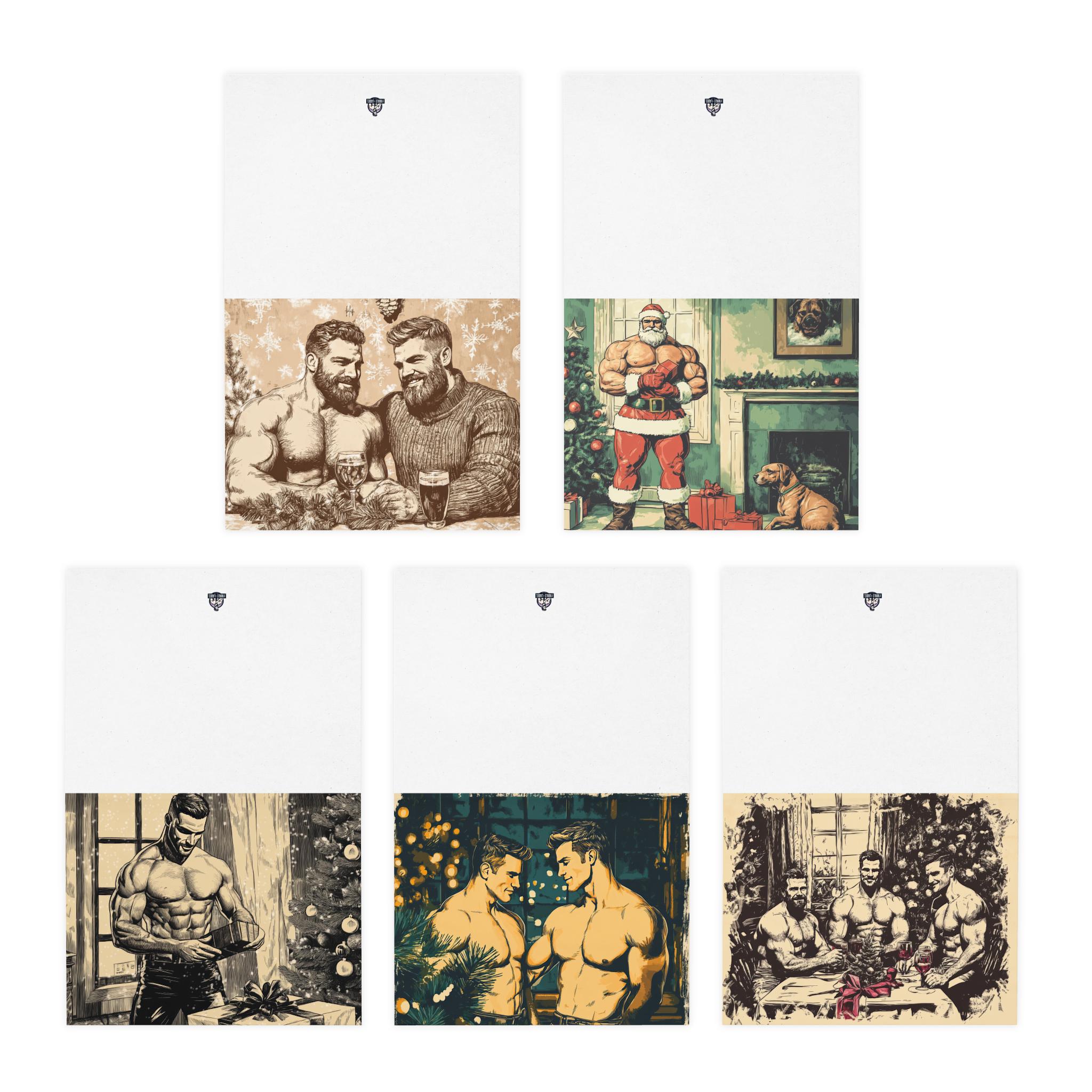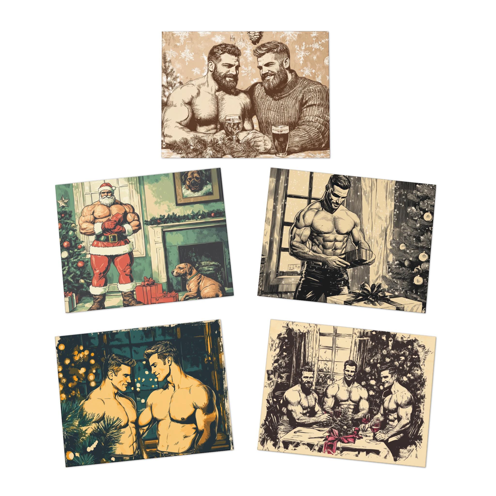 Retro Gay Christmas Cards, Handsome Men, Holiday Greeting (5-Pack)