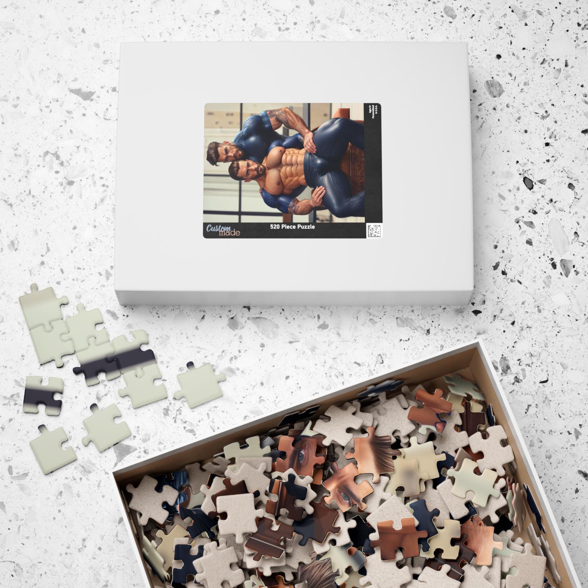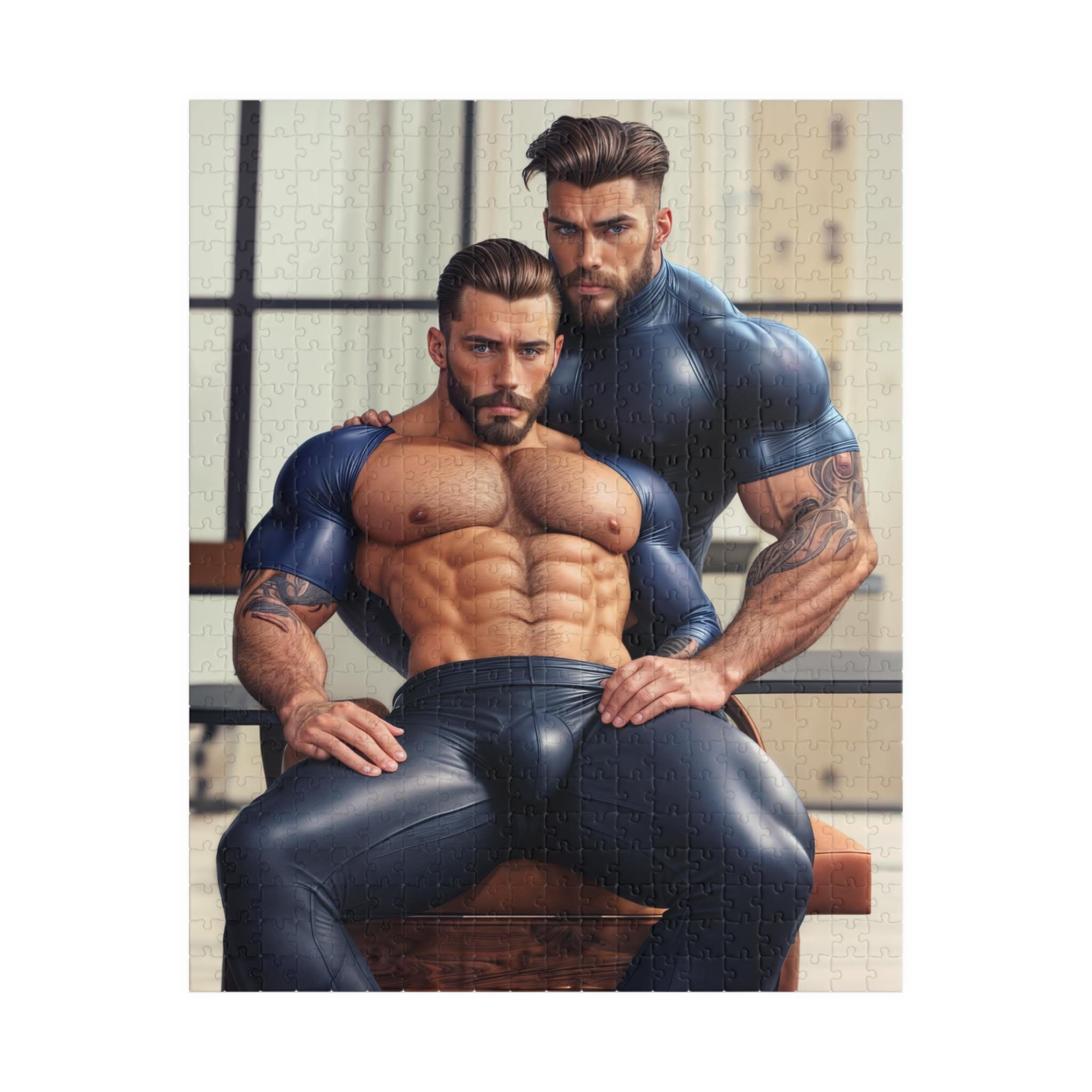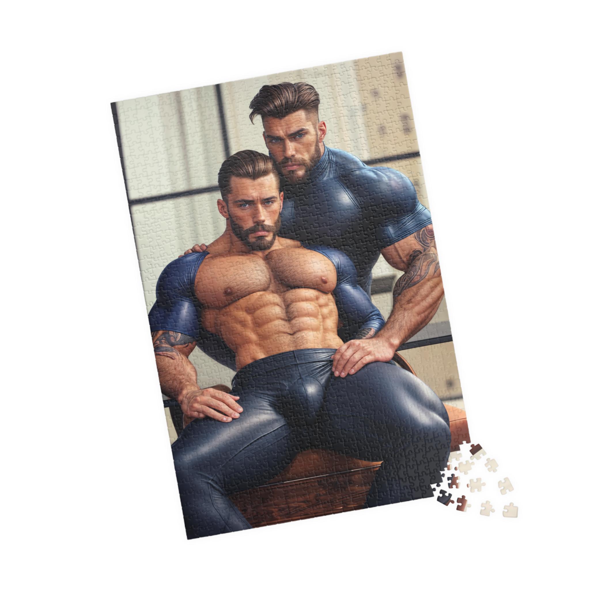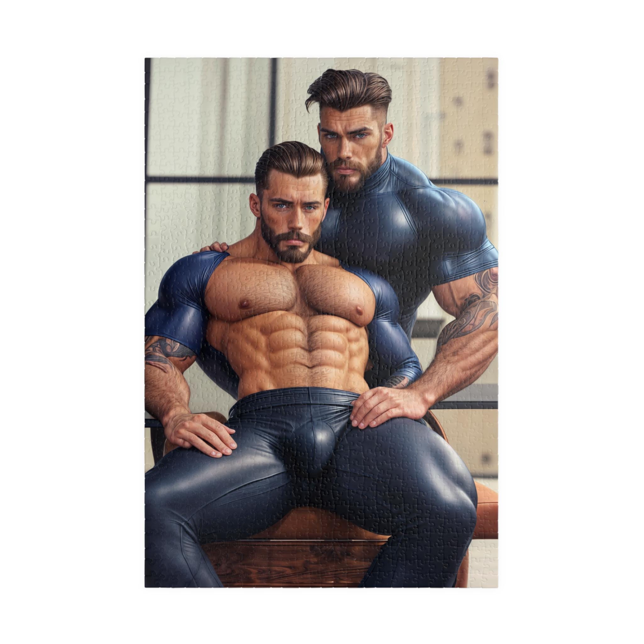 This Gay Puzzle featuring a Gay Muscular Couple in Leather/Latex is perfect for a fun and challenging activity. Its vibrant colors and high-quality chipboard pieces make it a great gift for puzzle enthusiasts. Ideal for LGBTQ+ community members, this puzzle is relevant for Pride Month celebrations and LGBTQ+ fun events.