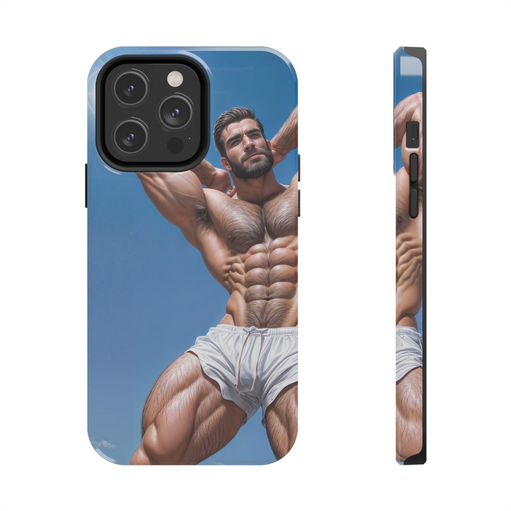Muscular Vintage Gay Hunk tough phone cases designed for the strong and proud. Perfect for those who want to show off their masculinity and pride. Ideal for the LGBTQ community, supporters of gay pride, and anyone who appreciates unique and protective phone accessories. Great for Pride Month, LGBTQ events, and everyday use.