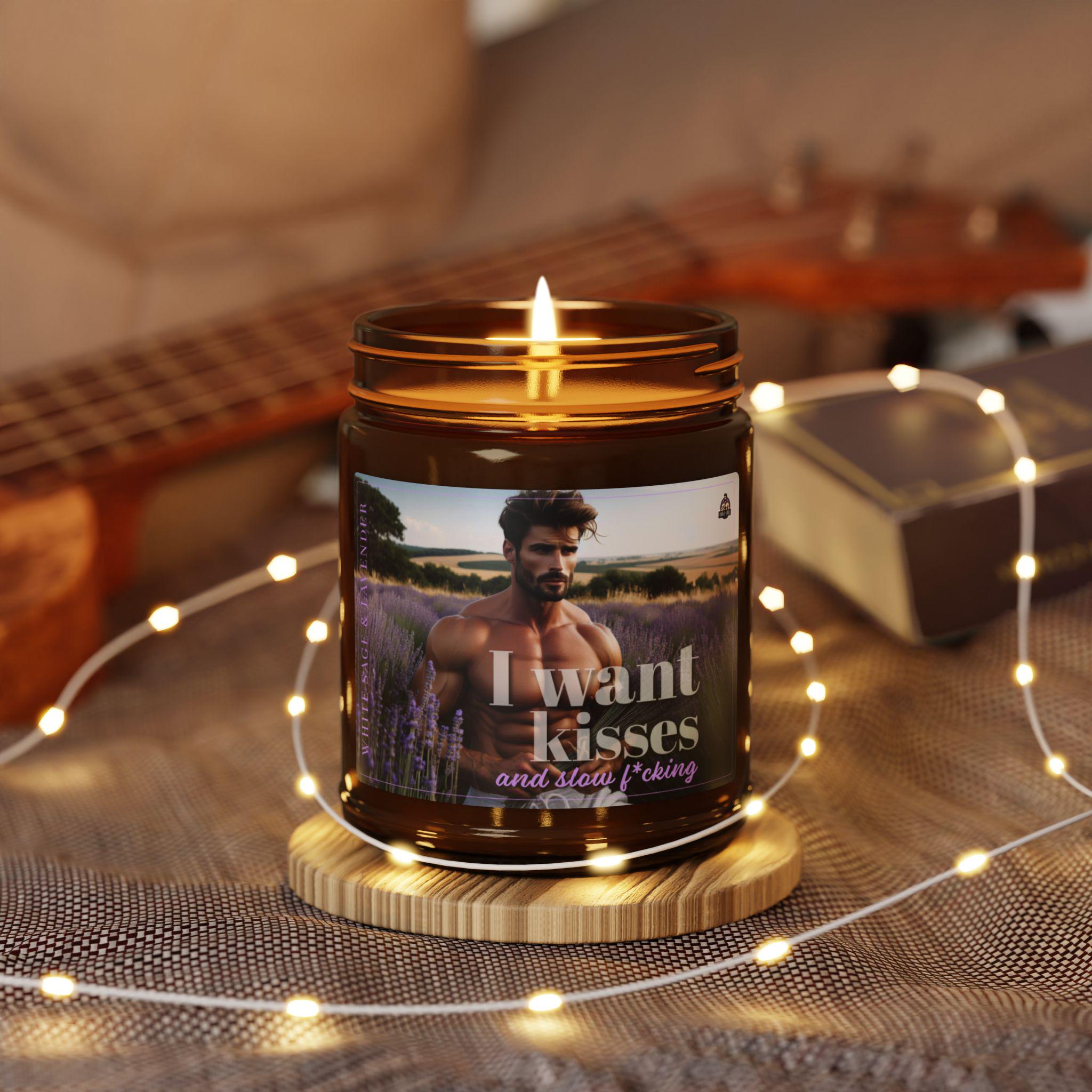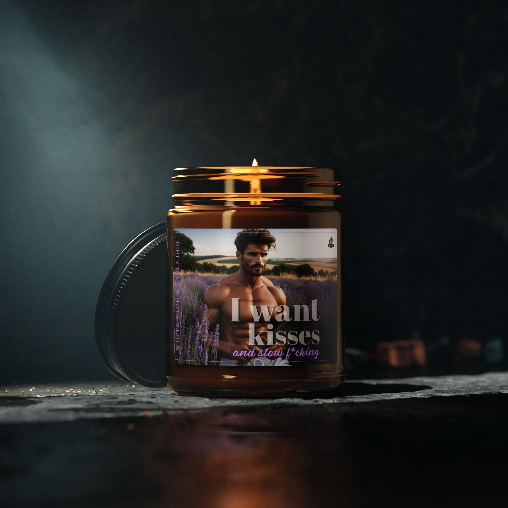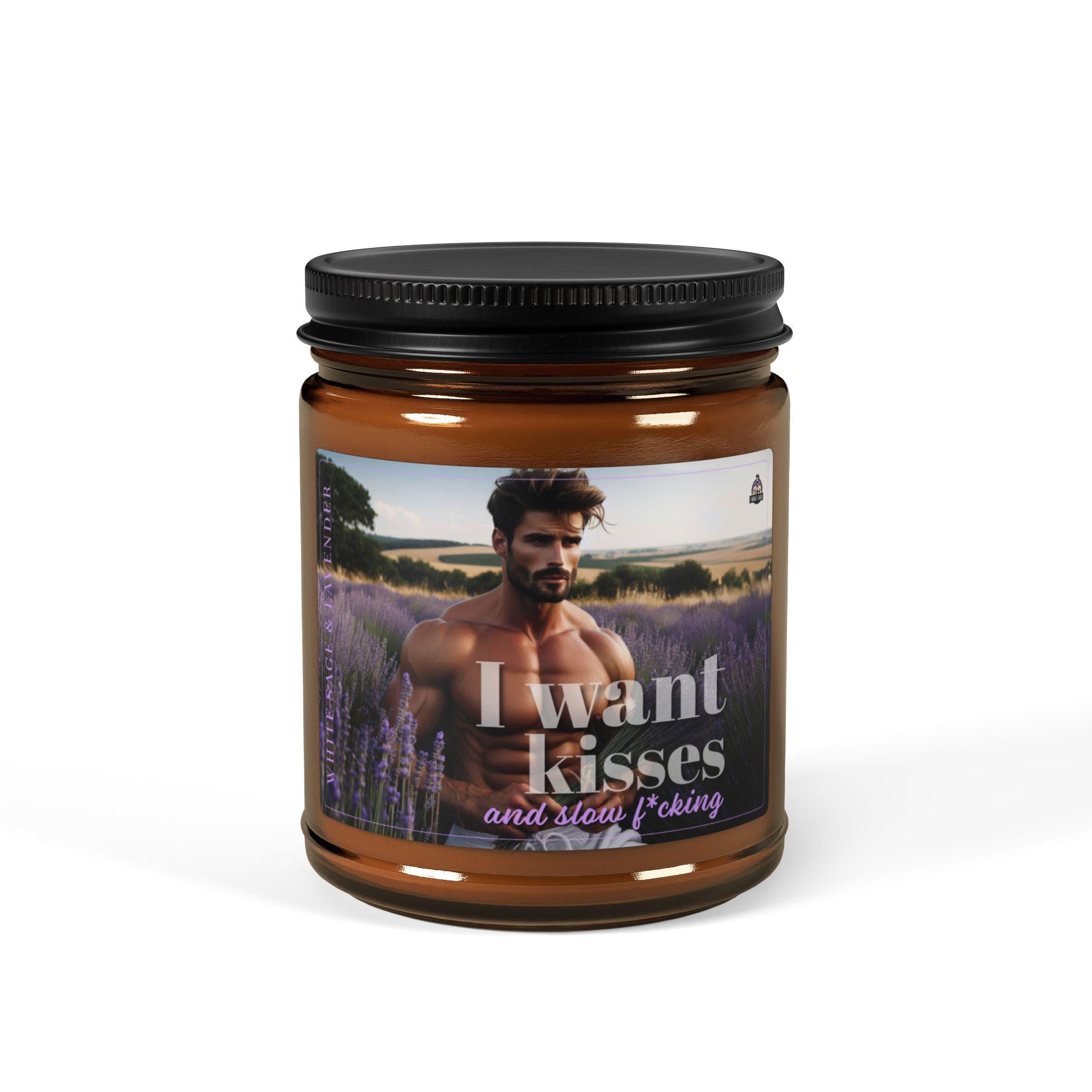 "I want kisses and slow f*cking" Amber Jar Soy Candle, White Sage and Lavender, Romantic Home Fragrance, Cozy Decor, Hand Poured Candle, Cuddle and Pound Quotes, Gift. This scented candle provides a romantic and cozy atmosphere, perfect for gifting or enhancing your home decor. Relevant for Valentine's Day, anniversaries, or as a thoughtful gesture for a loved one.