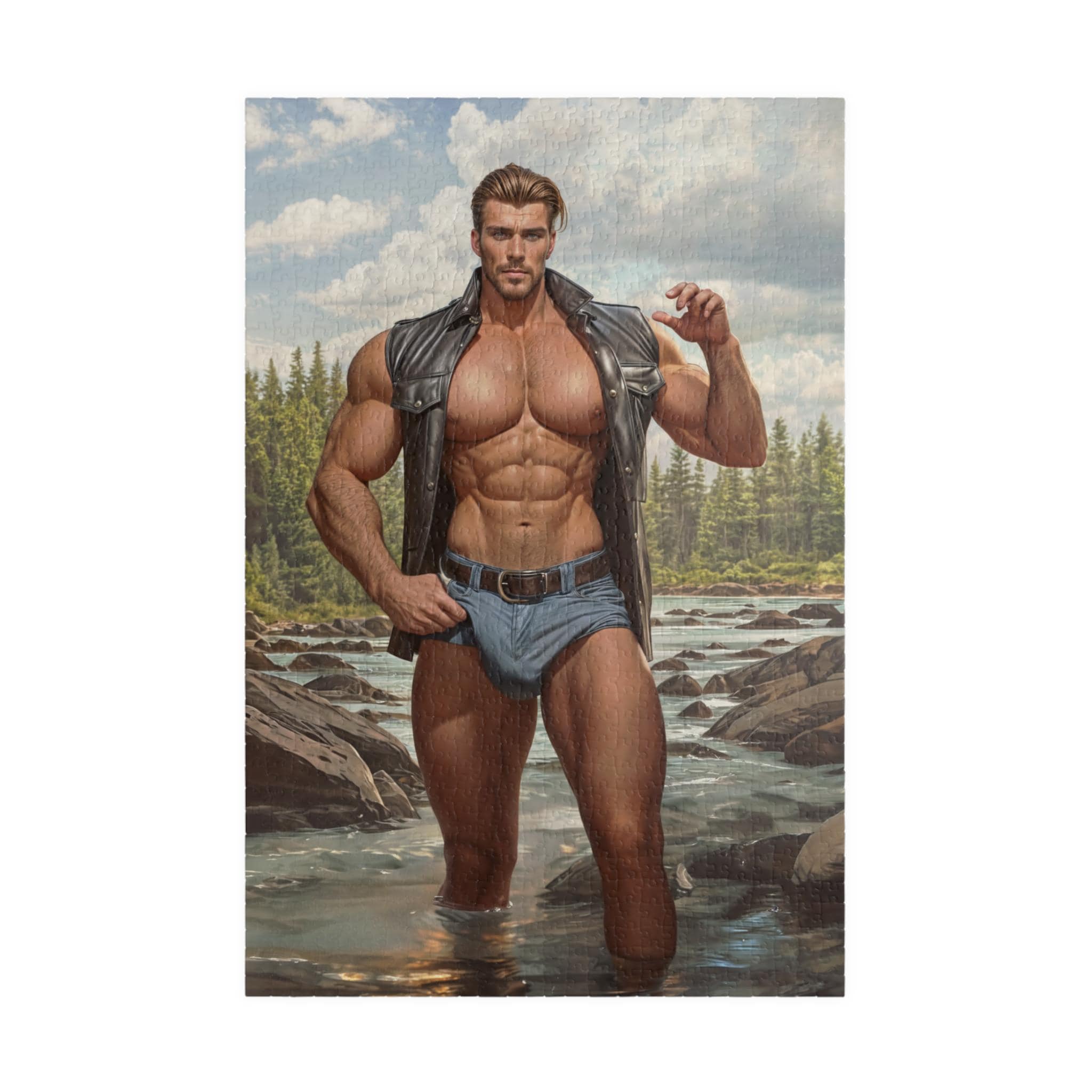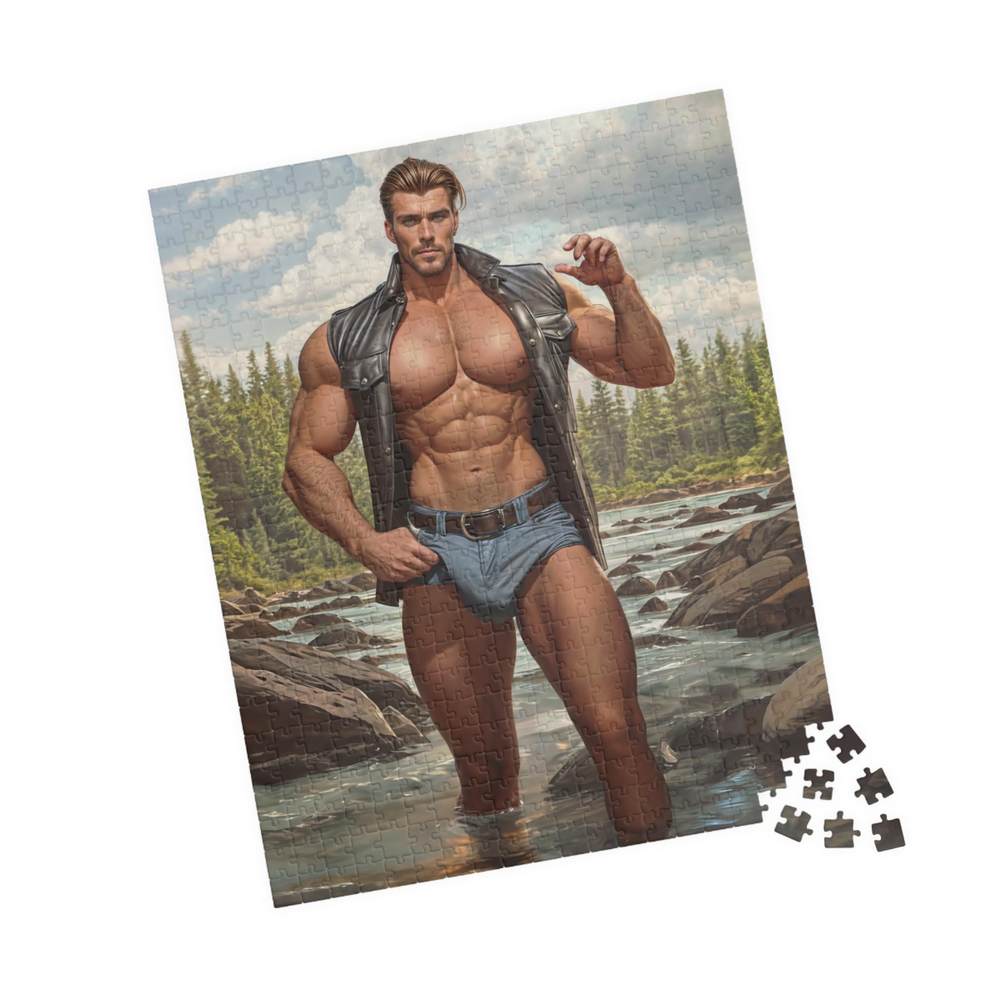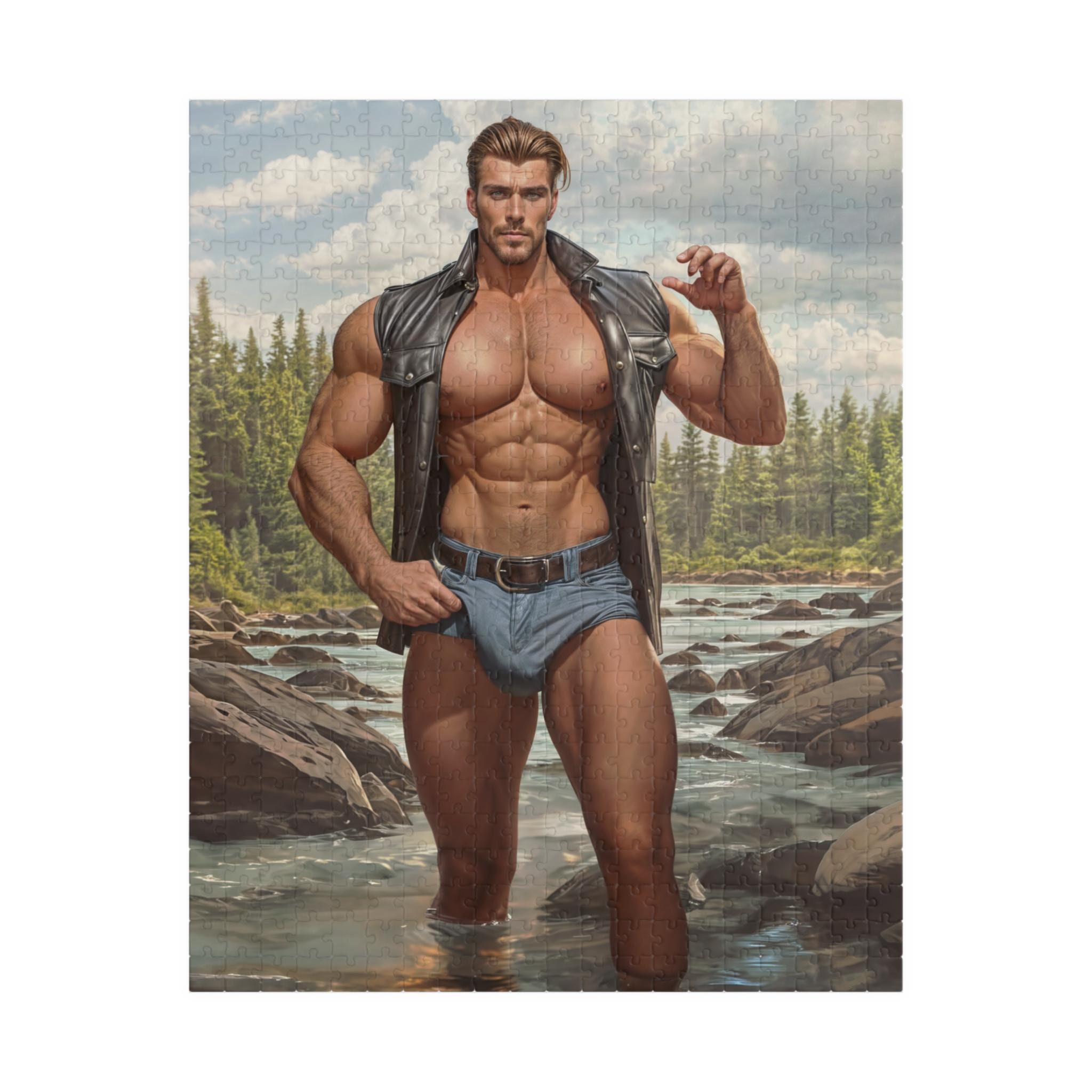 This Gay Puzzle featuring a Gay Muscular Lumberjack Man in the River is perfect for a fun and challenging activity. Its vibrant colors and high-quality chipboard pieces make it a great gift for puzzle enthusiasts. Ideal for LGBTQ+ community members, this puzzle is relevant for Pride celebrations or a Birthday Gift for a loved one.