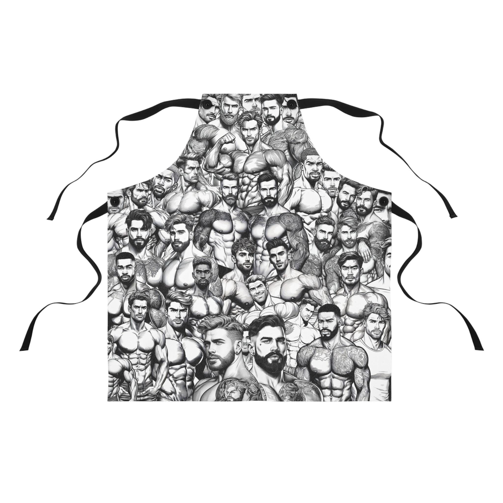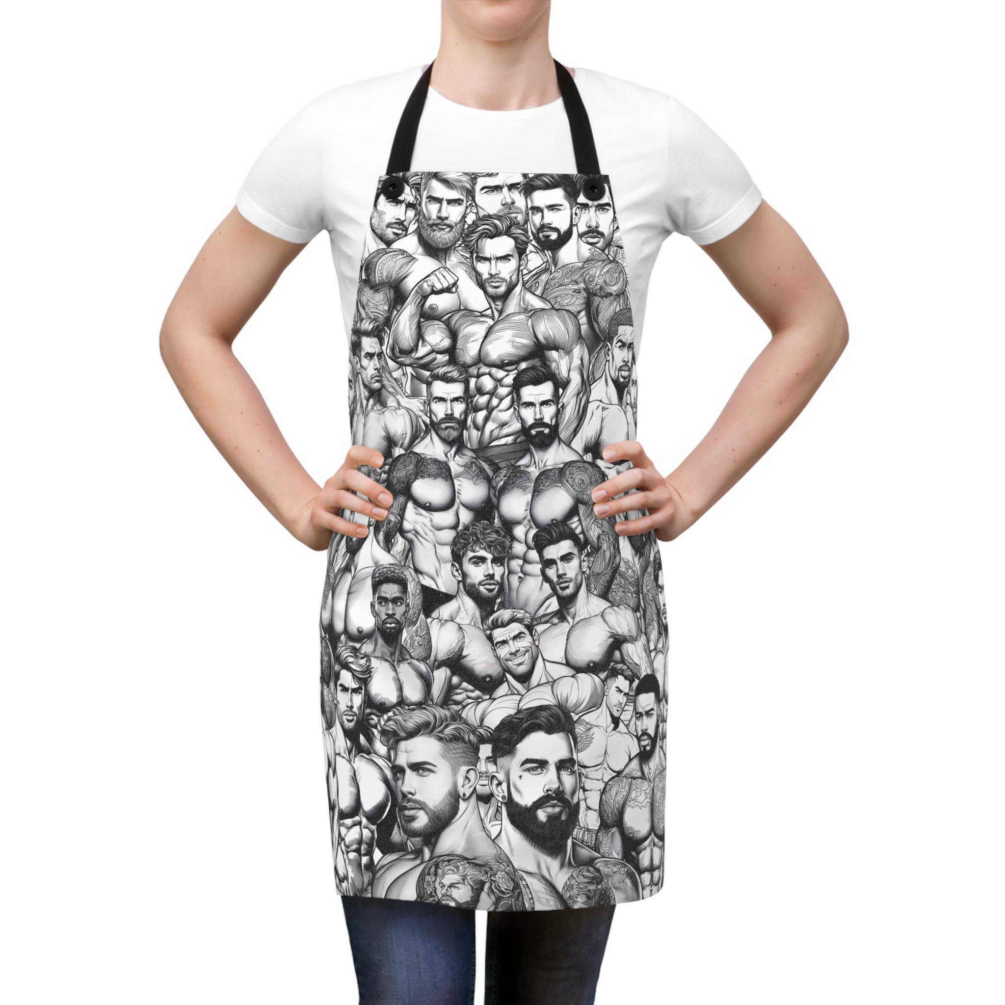Apron with Hot Muscular Handsome Men for Gays and friends. This apron exudes fun and flirtatious vibes, perfect for adding a touch of humor to cooking or grilling. Ideal for members of the LGBTQ+ community and their friends. Relevant for pride celebrations, housewarmings, or just for adding some fun to everyday kitchen tasks.