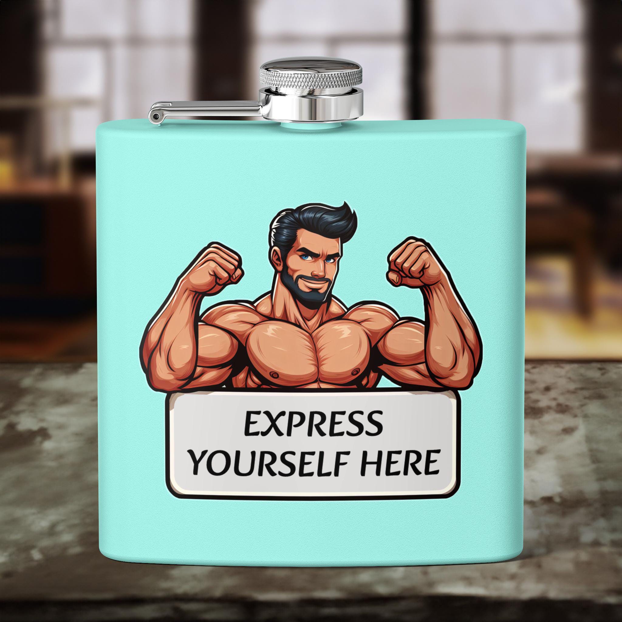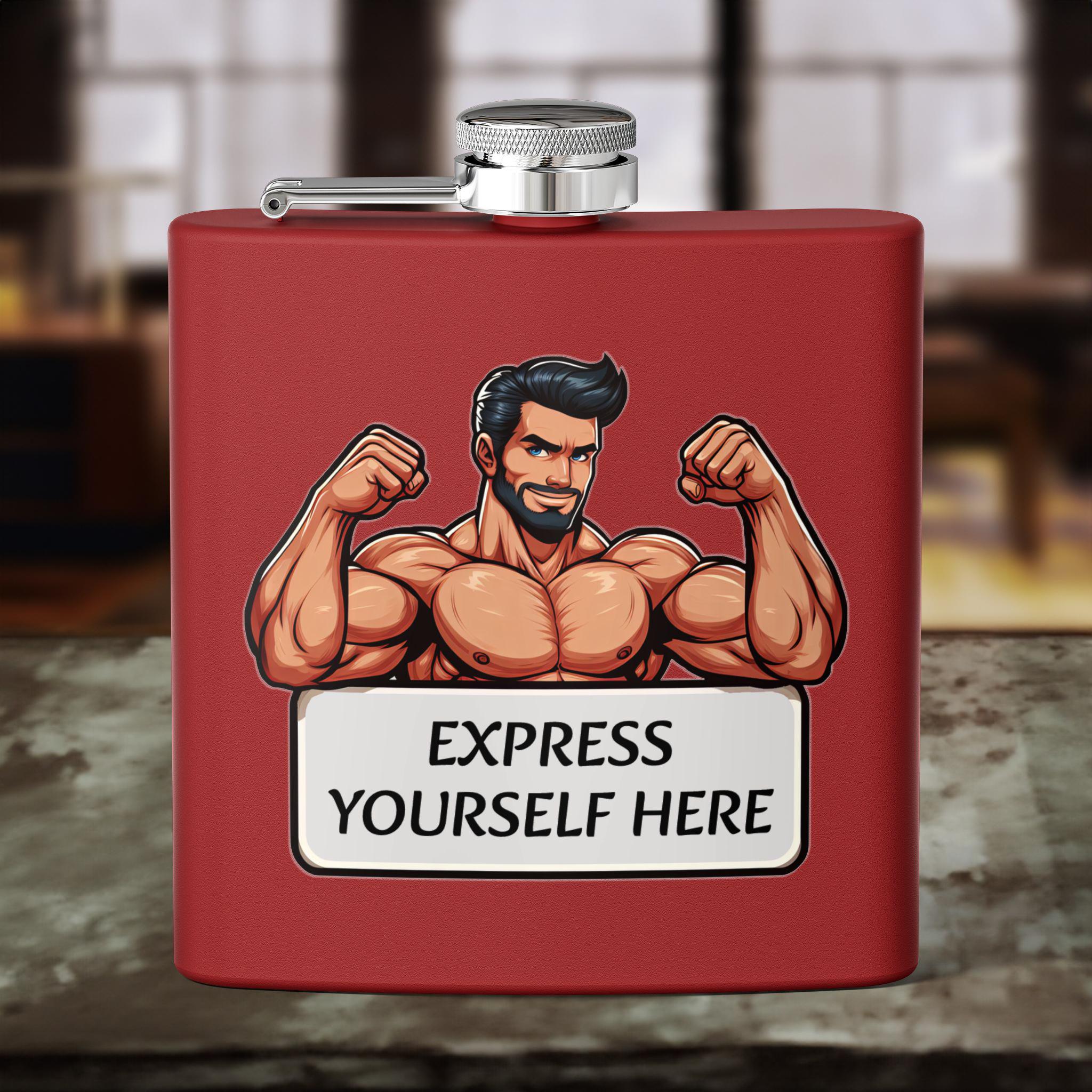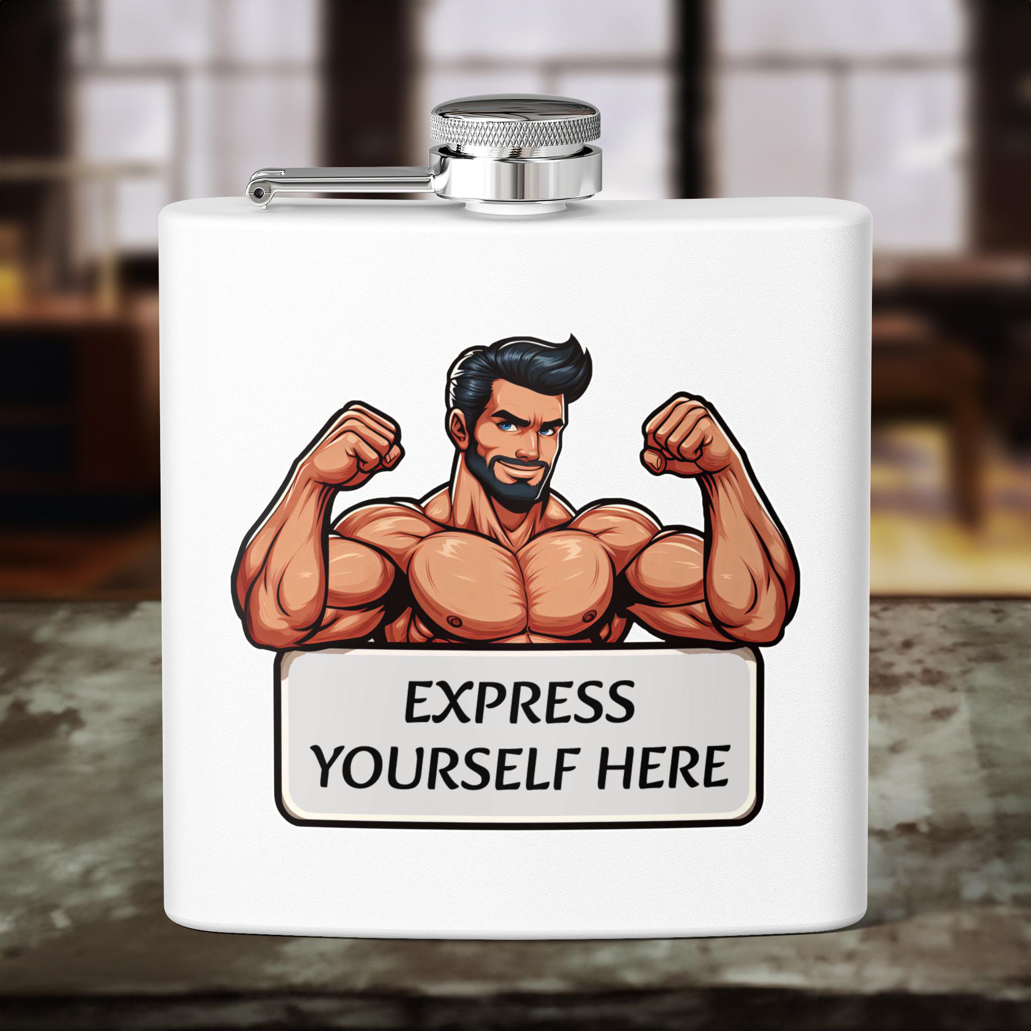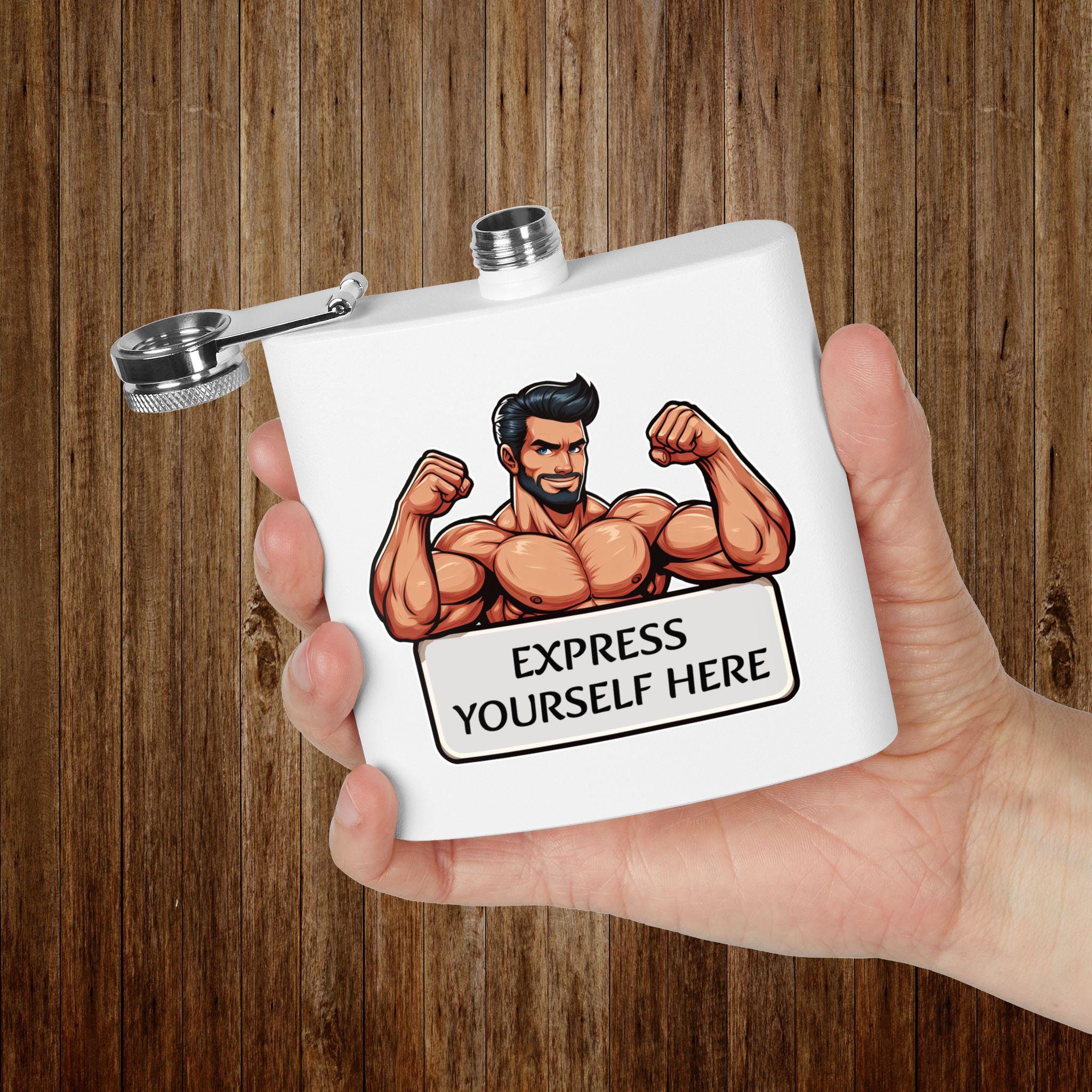 Personalizable stainless steel flask perfect for outdoor adventures, parties, or as a unique groomsmen gift. Features a leak-proof lid, double-wall insulation, and a powder-coated finish. The humorous Muscle Gay design adds a fun touch to any gathering.