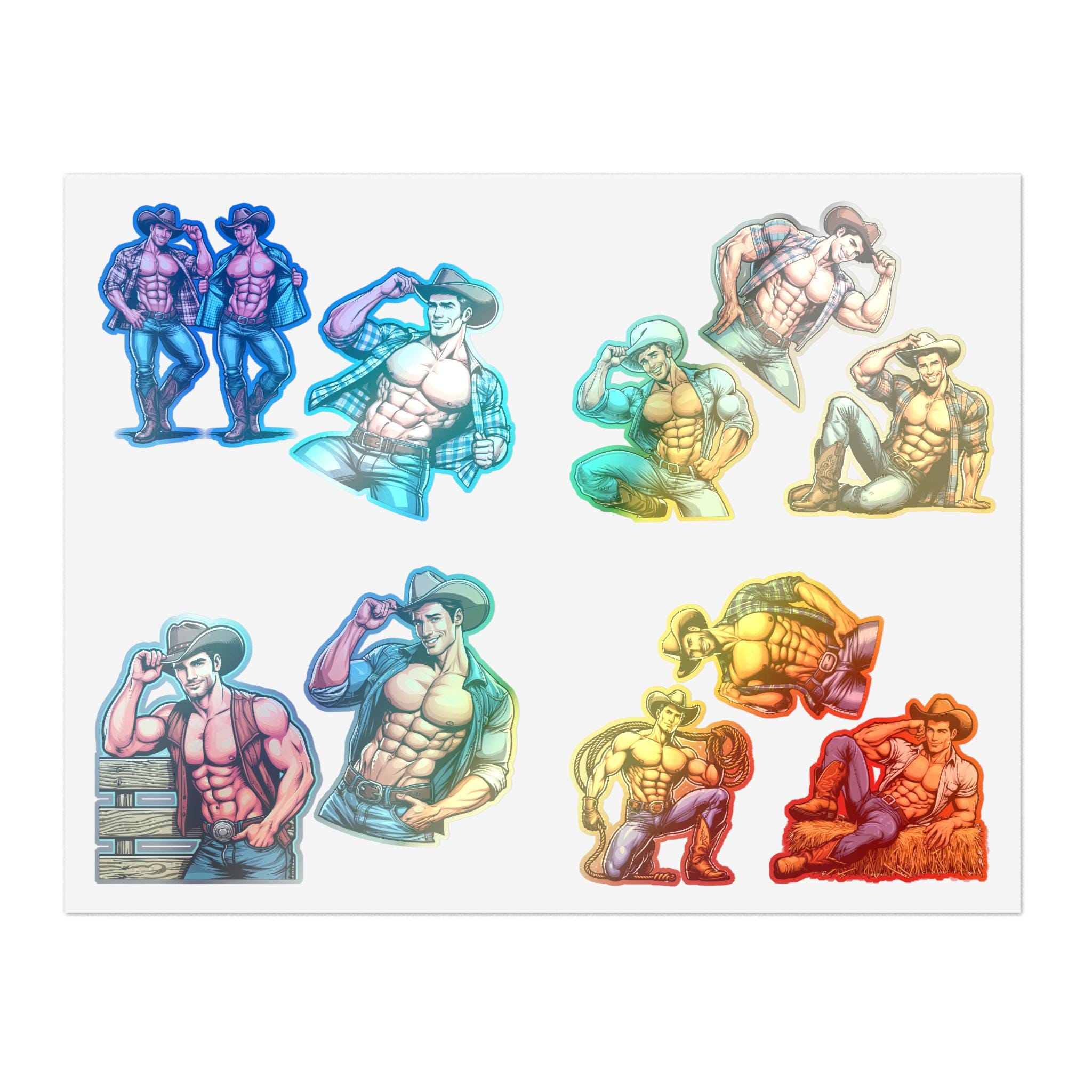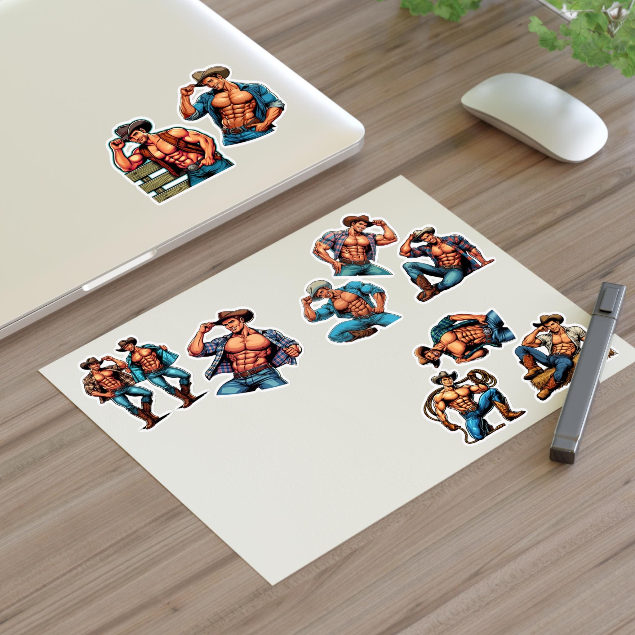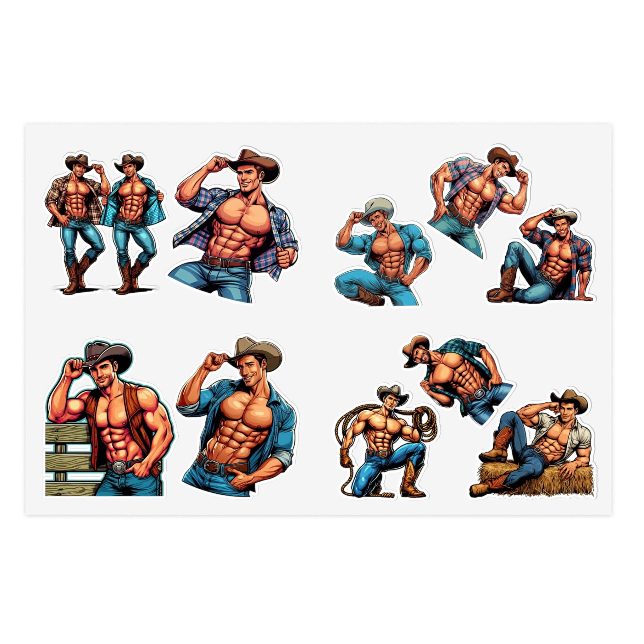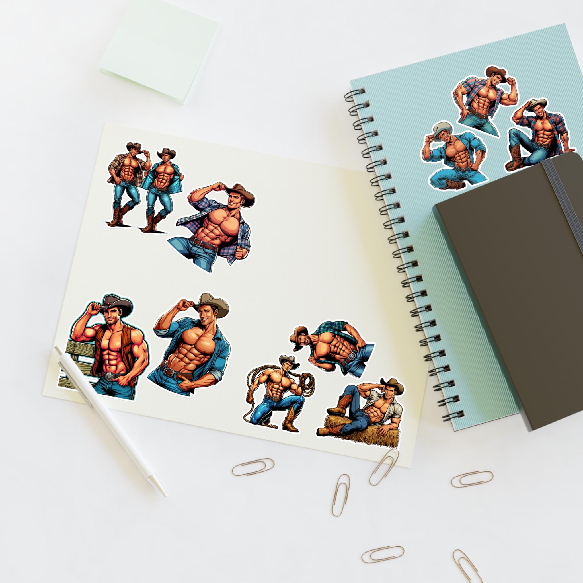 These sticker sheets feature 10 Gay Muscular Cowboys Queer decals, perfect for adding a touch of pride and personality to your belongings. Ideal for LGBTQ+ individuals or allies, these stickers are great for decorating laptops, water bottles, notebooks, and more. Perfect for Pride Month, LGBTQ+ celebrations, and personal expression.